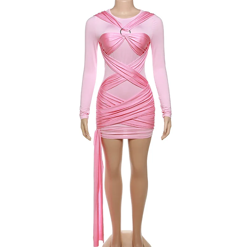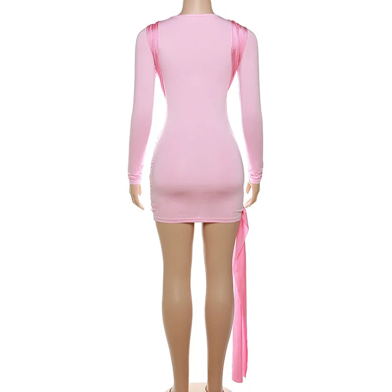 Bomblook C321DS01 Spring 2024 New Patchwork Long Sleeve Sexy Mini Dress With Bandage Bodycon Streetwear Elegant Dresses Women