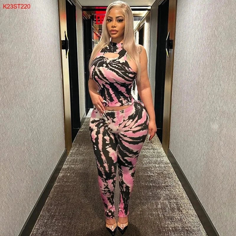 Bomblook K23ST220 Print Sleeveless Halter 2 Piece Set Women Pants Sets For Women Two Pieces Women Two Piece Set Summer 2024