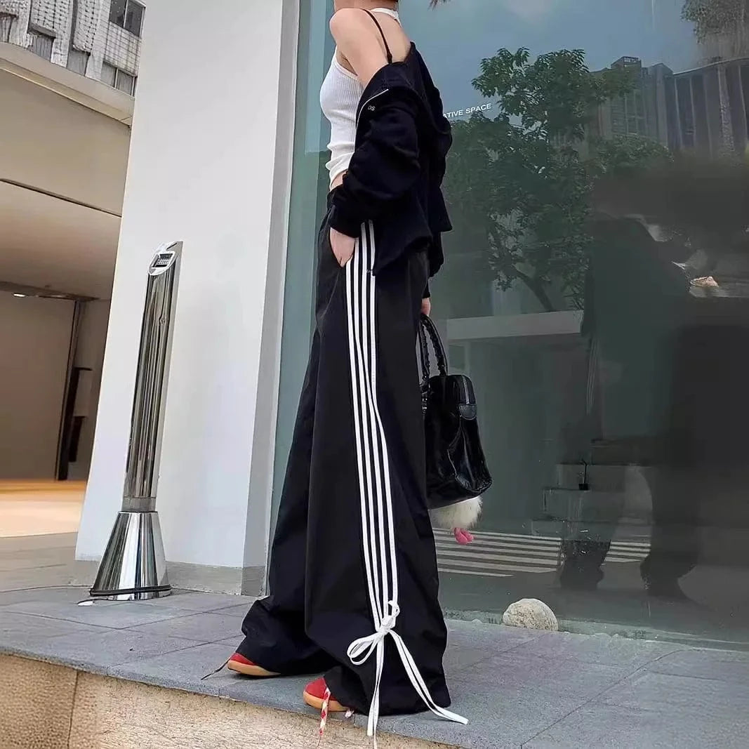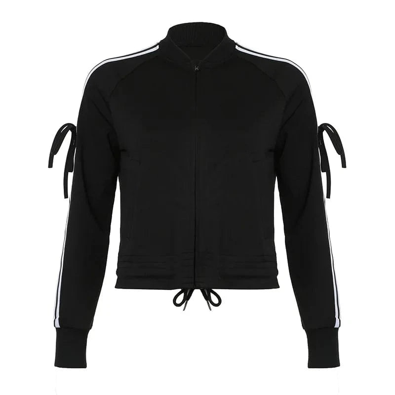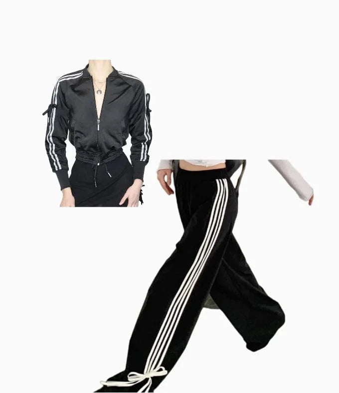 Bomblook Z915ST02 Street Sports Bow Striped Jacket Stand Collar Women's Slim Fit Zipper Jacket+Pants Bow Pants 2 Piece Set