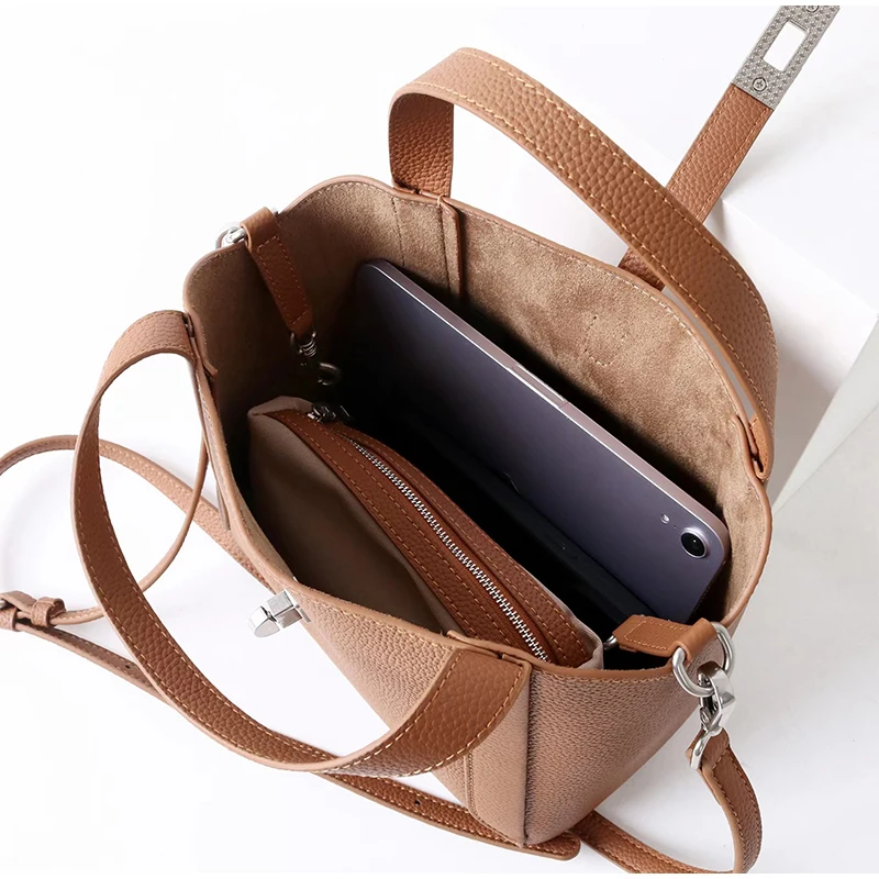 Brand Genuine Leather Basket Bag Women Luxury Fashion Simple Texture Tote Bag New Versatile High-end Shoulder Bag Messenger Bag