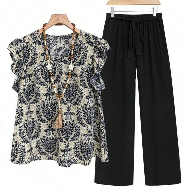 Casual 2 Piece Sets Women Outfit 2025 Summer Fashion Sleeveless Floral Print V-neck Shirts Tops And Pant Sets Elegant Suit
