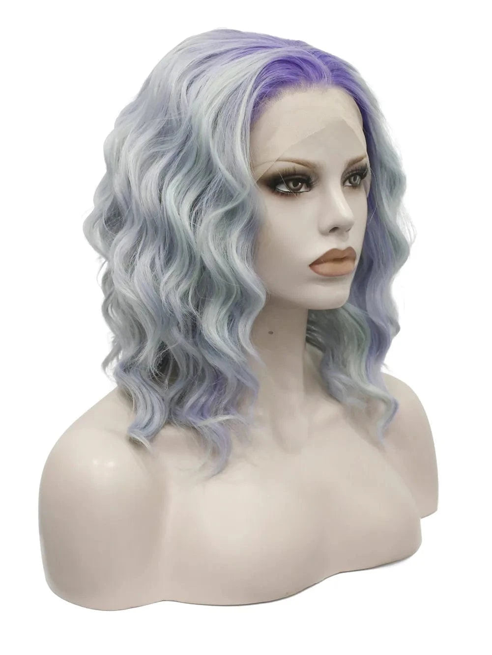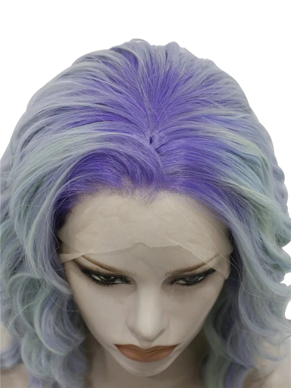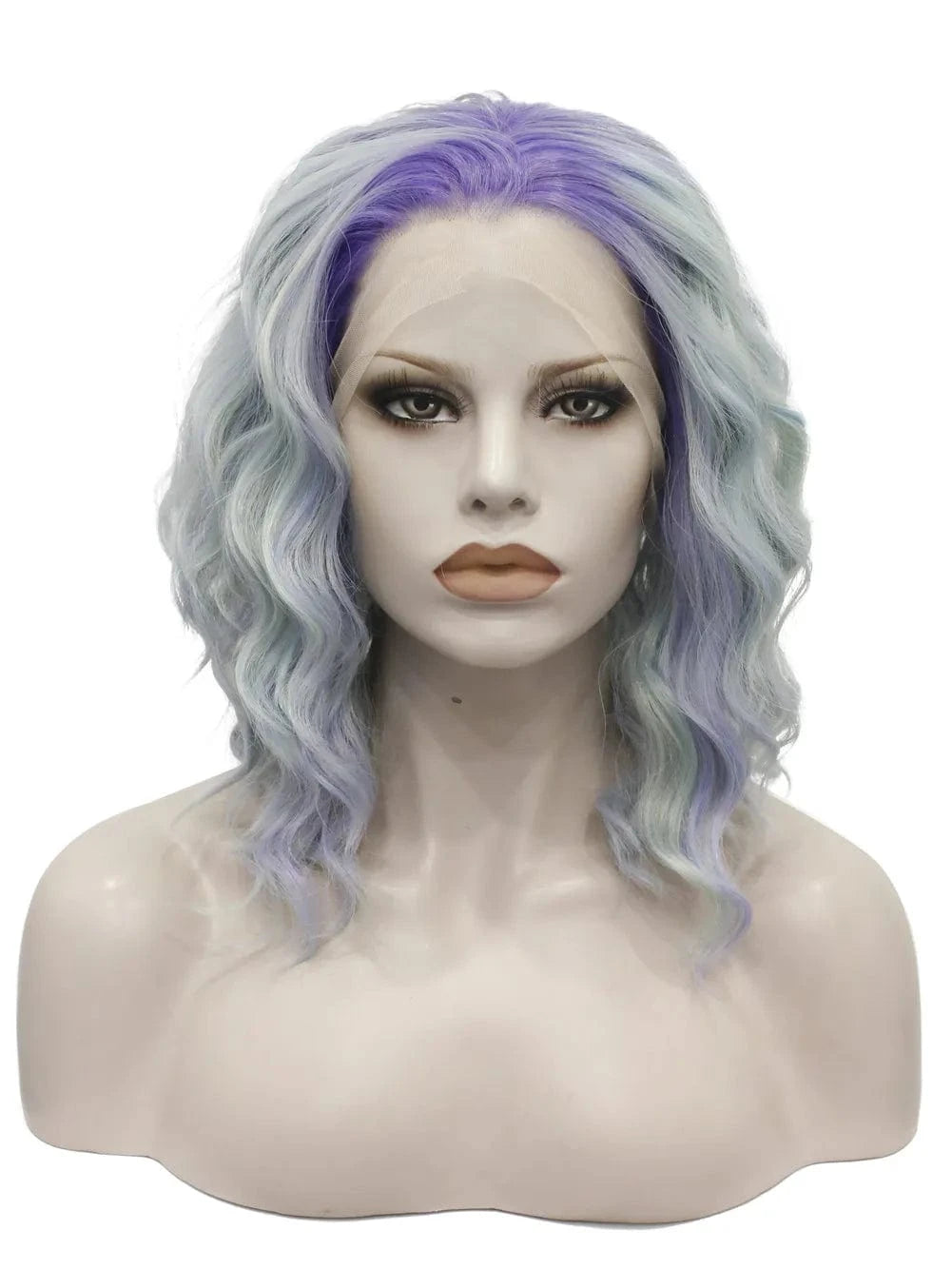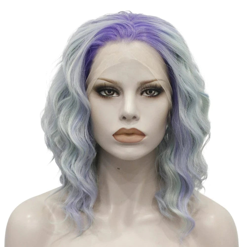 Celebrity 14inch dyed blue purple dark roots curly WigCosplay Premium Synthetic Wigs Futura Heat Resistant Synthetic Hair Wig
