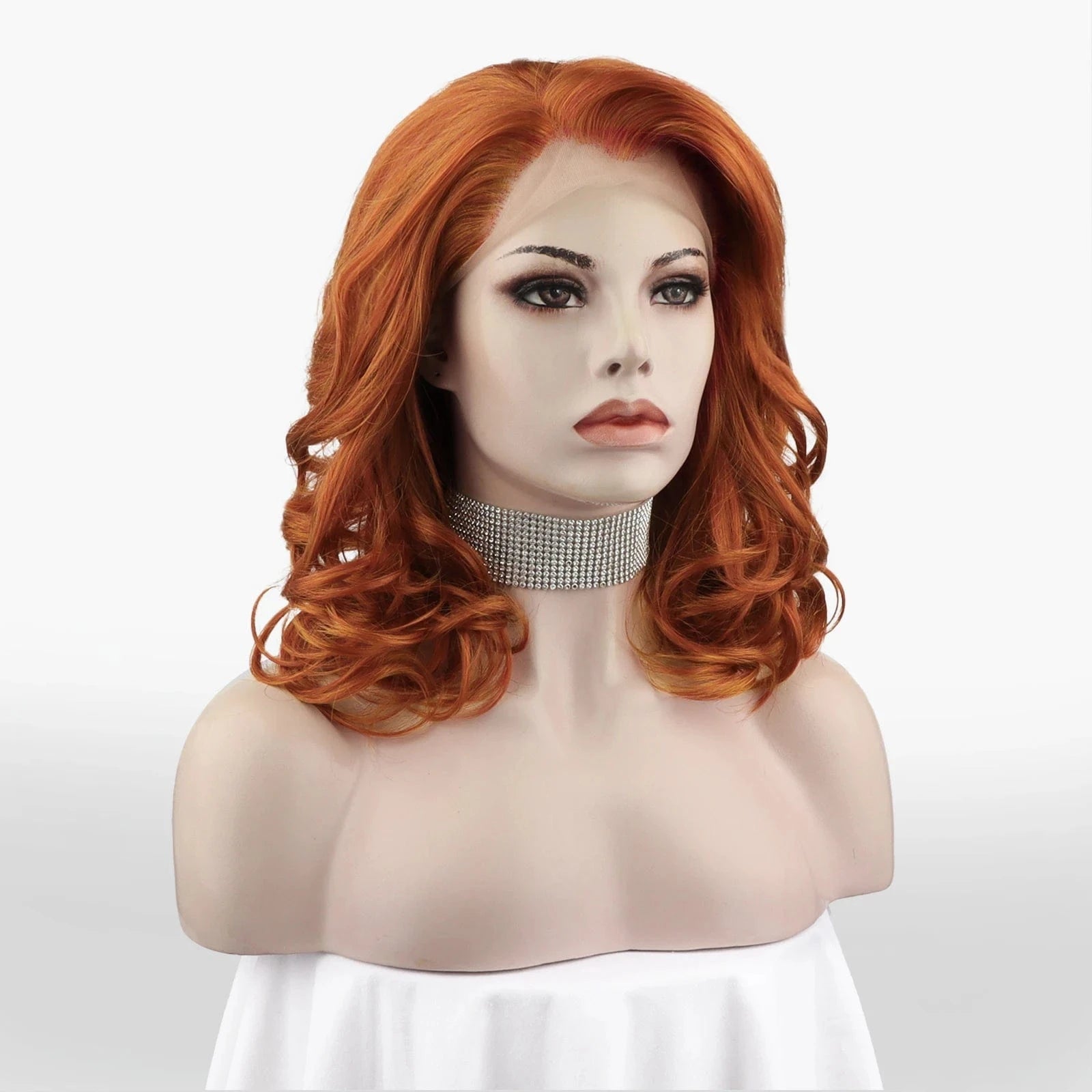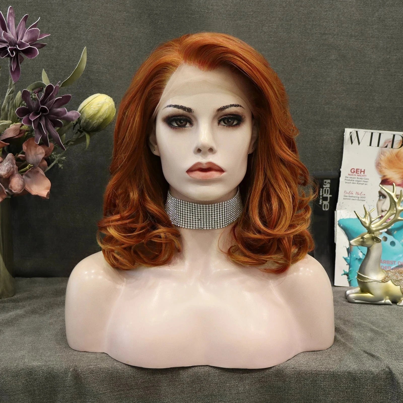 Celebrity 16inch Short bob cut copper hair Matte Heat Resistant Fiber synthetic wigs vendor
