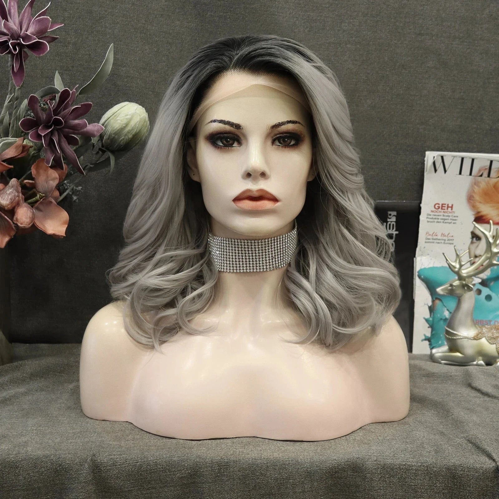 Celebrity 16inch Short bob cut Silver Ombre Hair grey Matte Heat Resistant Fiber synthetic wigs vendor