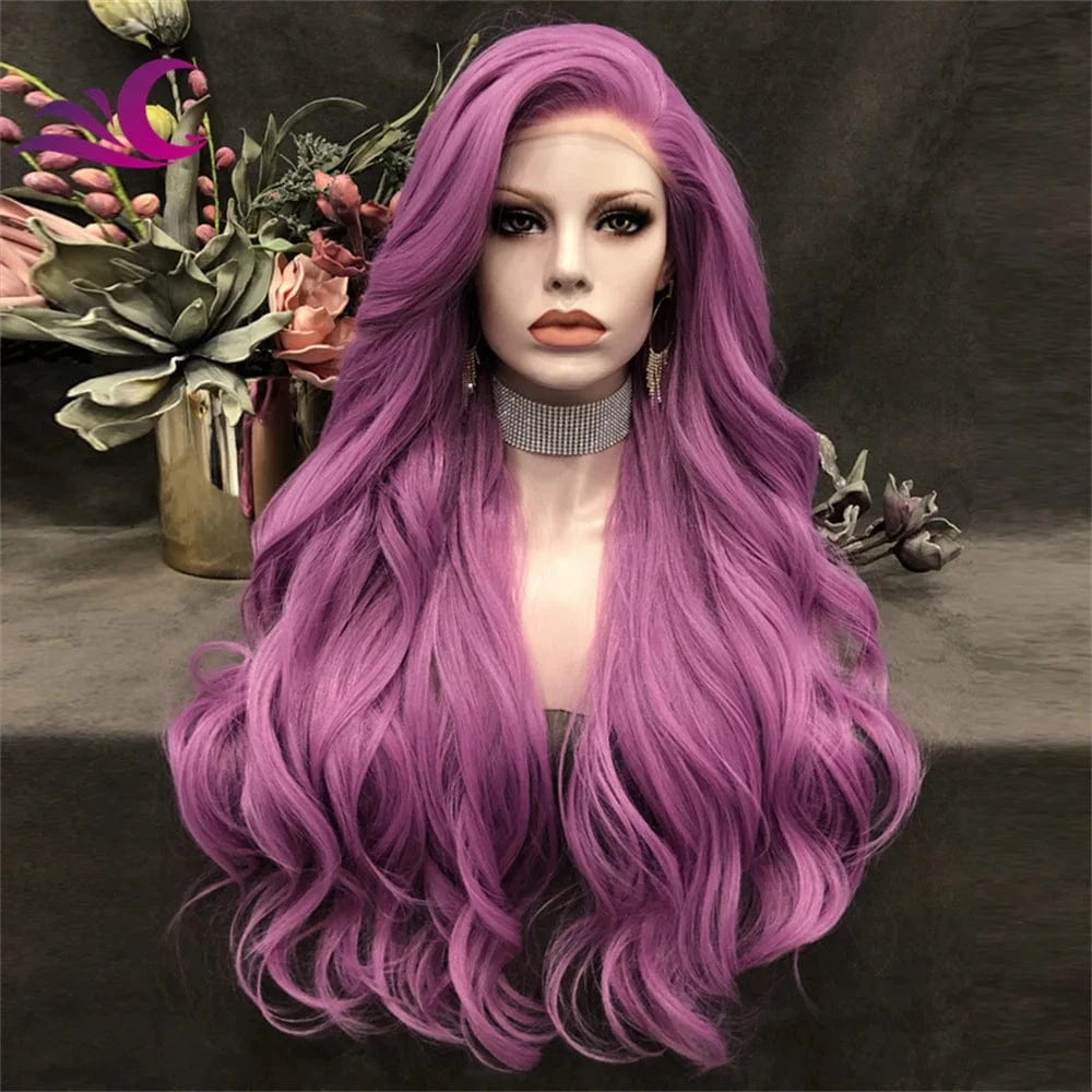 Celebrity 180% Density New Fashion Popular Lace Front Wig Purple Long Wavy Heat Resistant Fiber Party Cosplay for Black Women