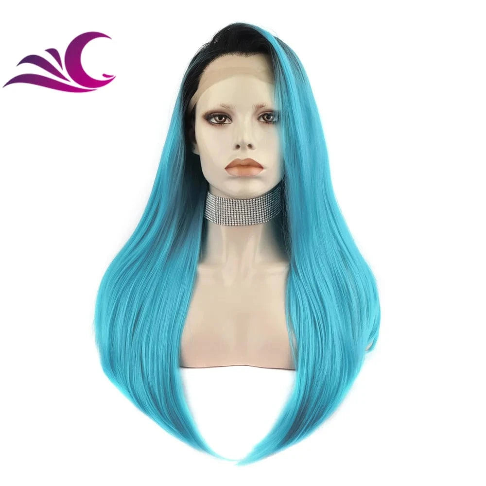 Celebrity dark blue black pre-plucked natural hairline synthetic lace front wig for drag queen