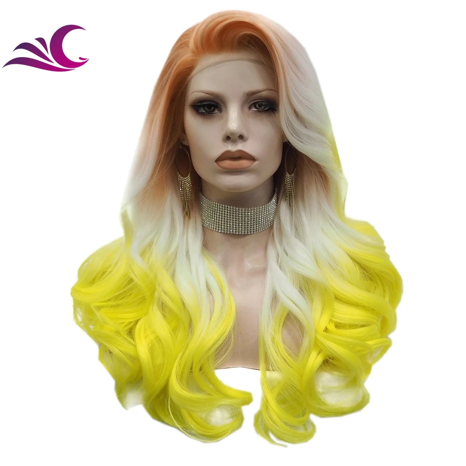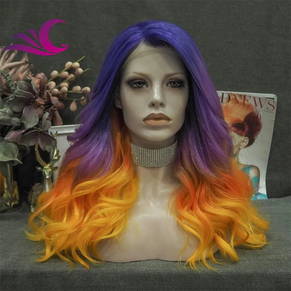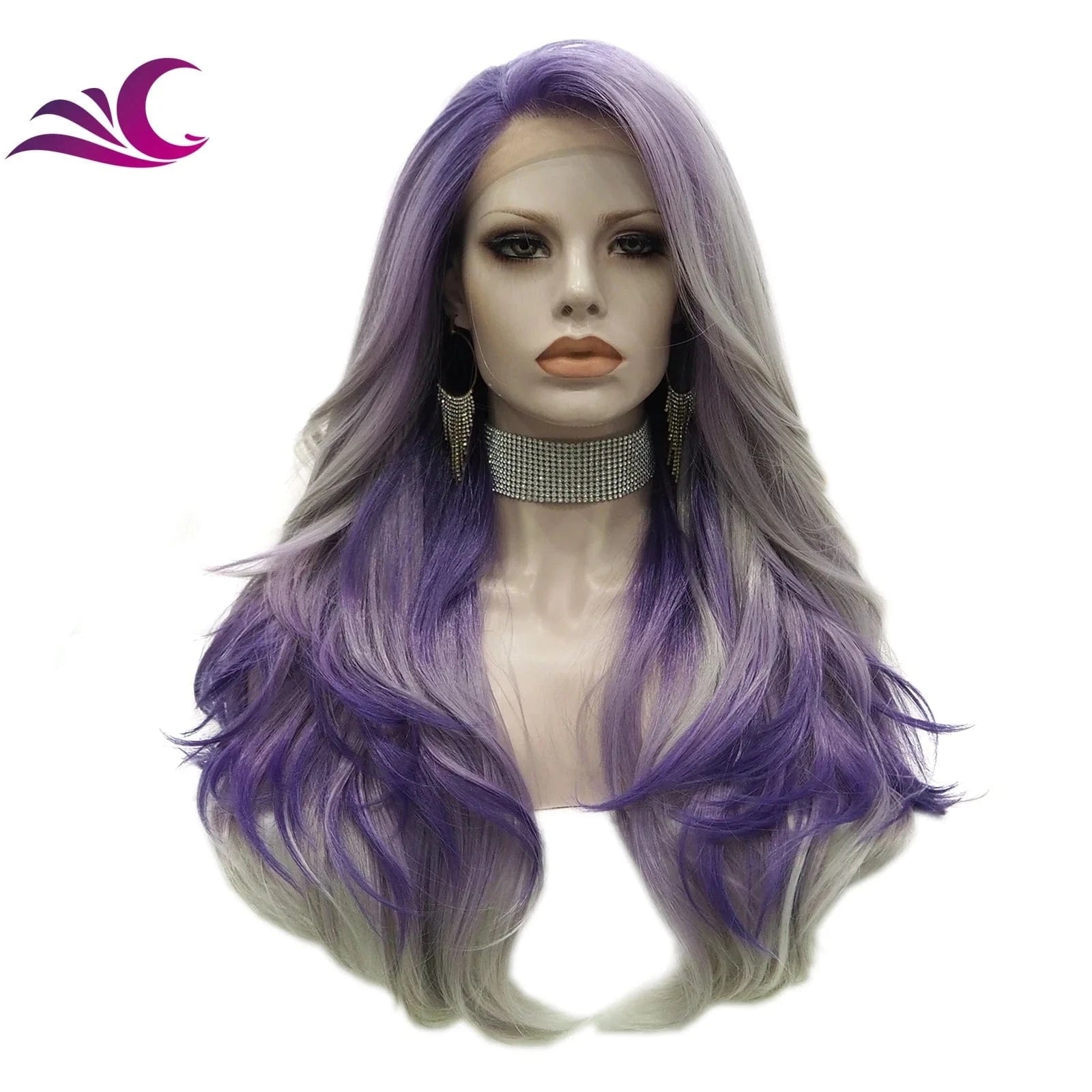 Celebrity layer wig blue pink highlight in both side brown synthetic wig futura fiber replacement Human Hair Wig