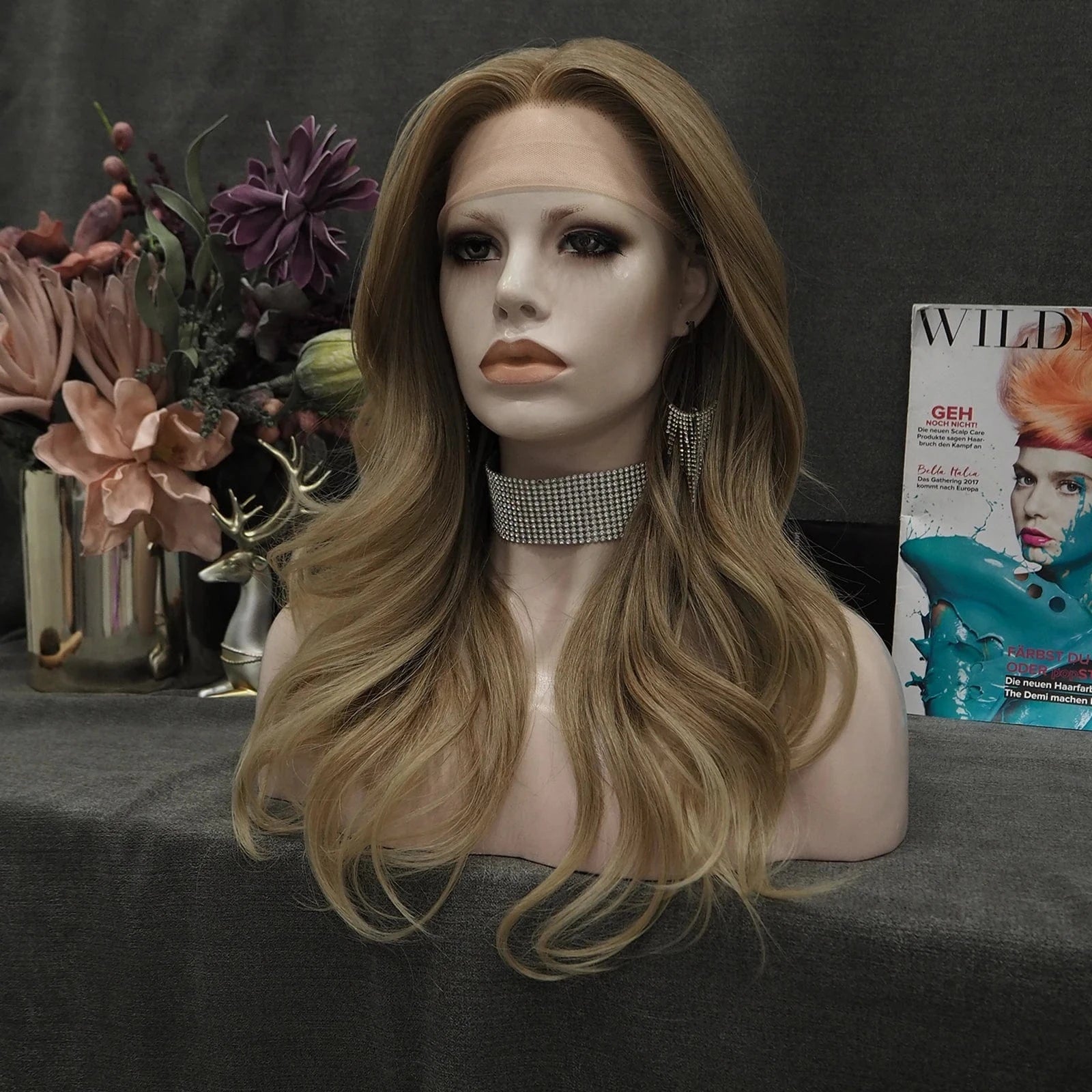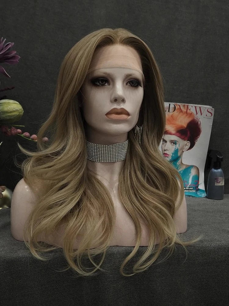 Celebrity T Part Front Premium Synthetic Wigs Body Wave Futura Heat Resistant Synthetic Hair Wigs with Highlights