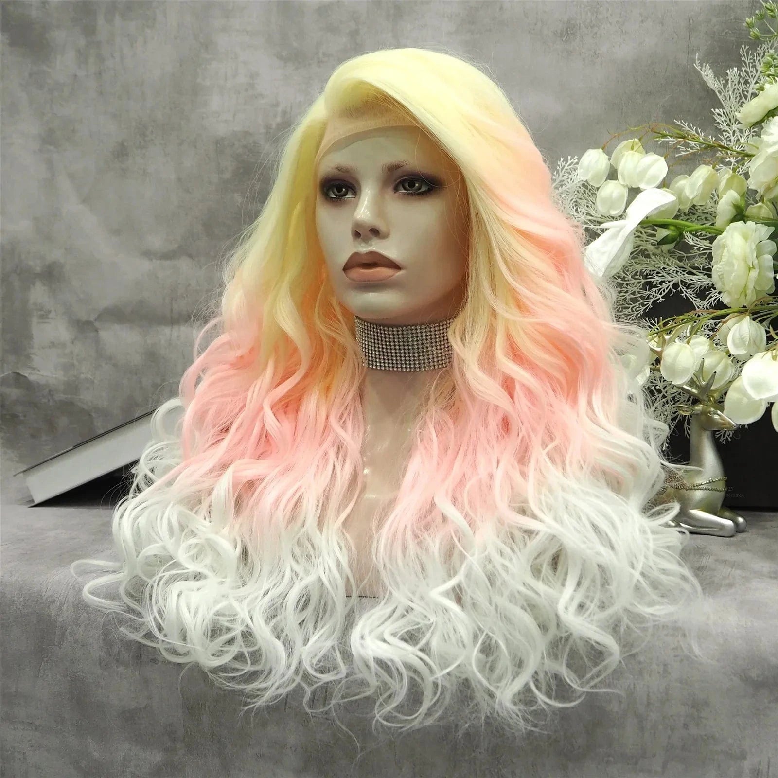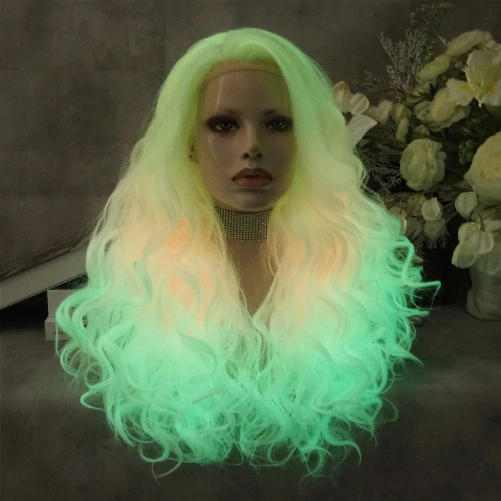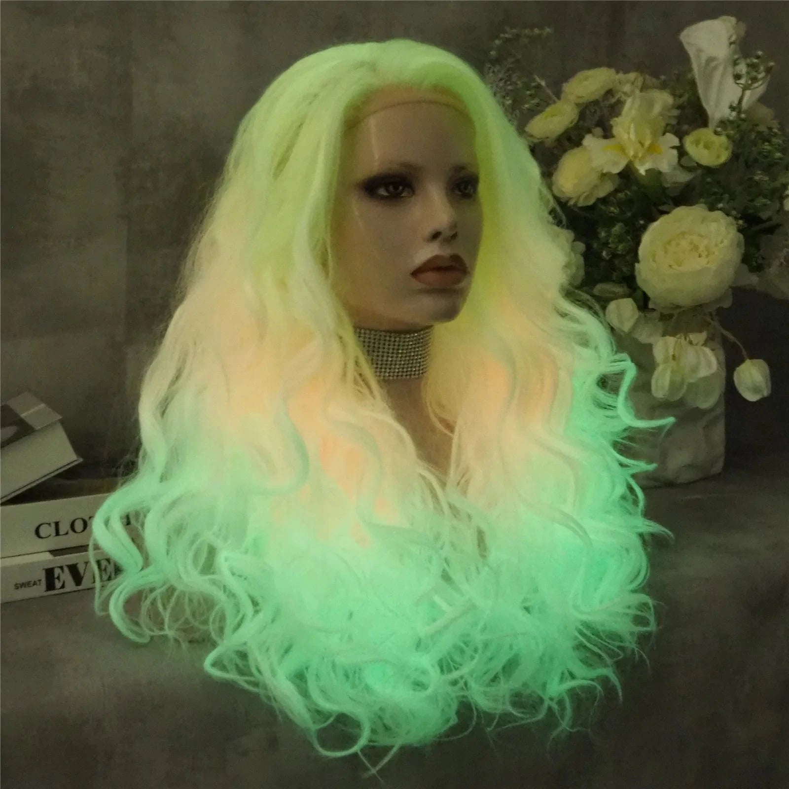 Celebrity Wholesale curls Natural Wavy Long Heat Resistant Synthetic hair Wigs for Women glow in the dark wig