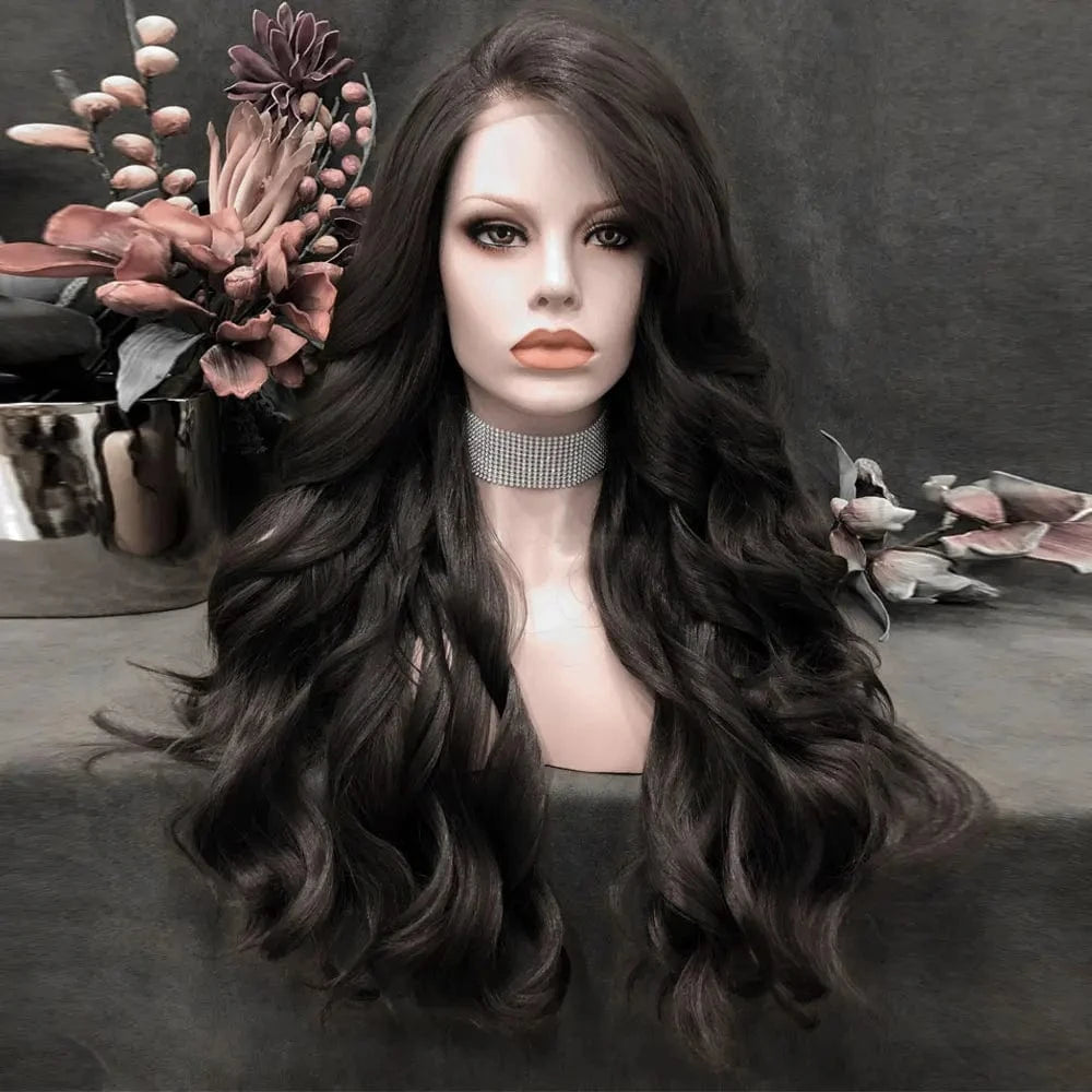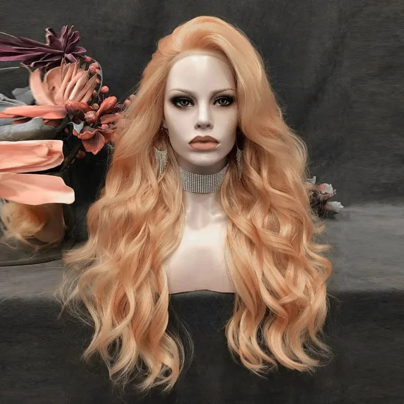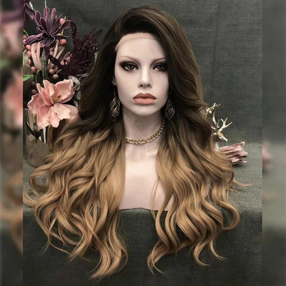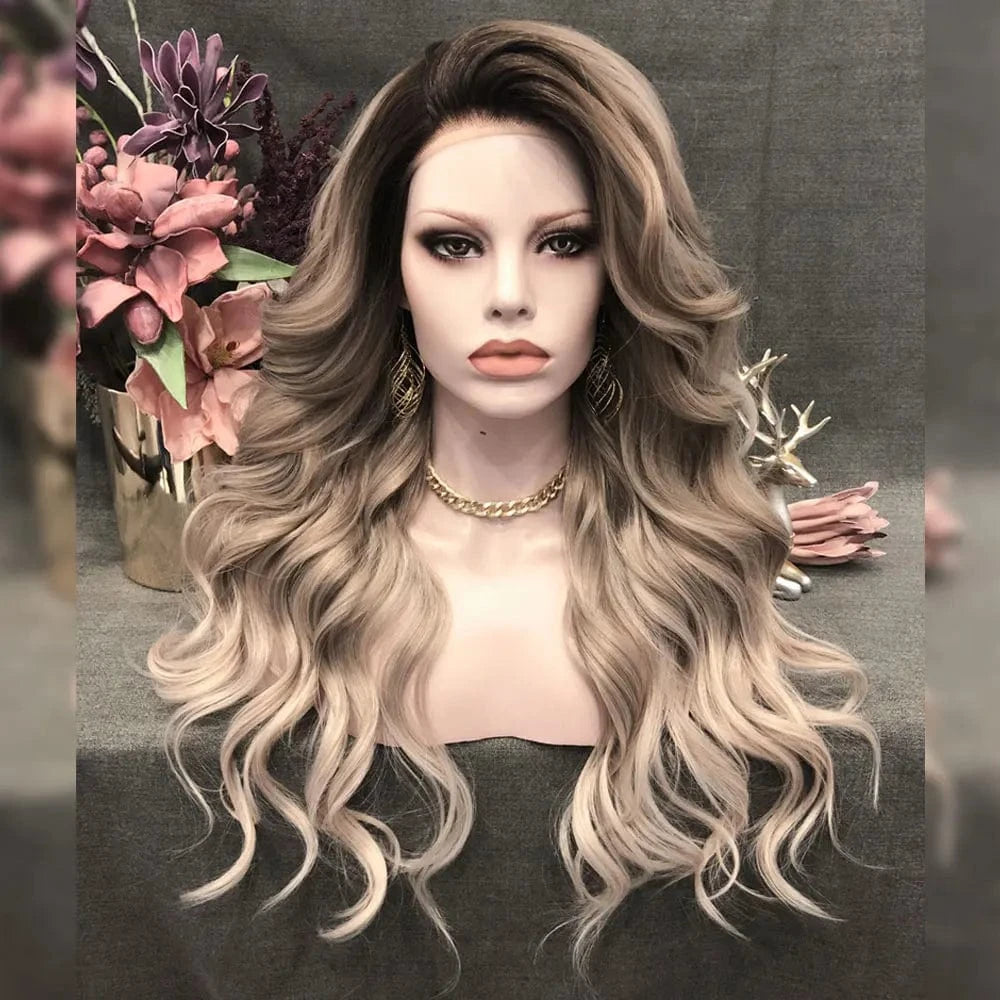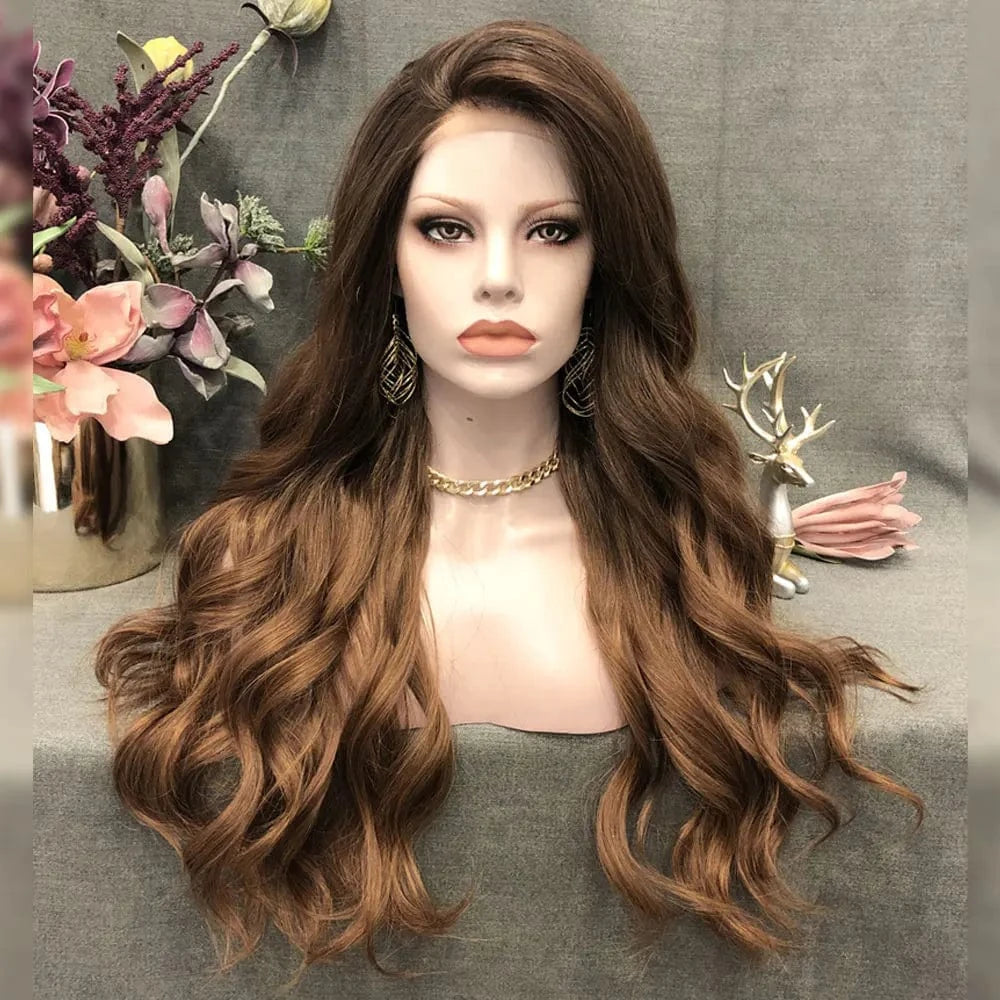 Celebrity Wig Lace Front Wigs Matte Heat Resistant Fiber Same Human Hair Lace Front Wigs in Body Wavy Texture
