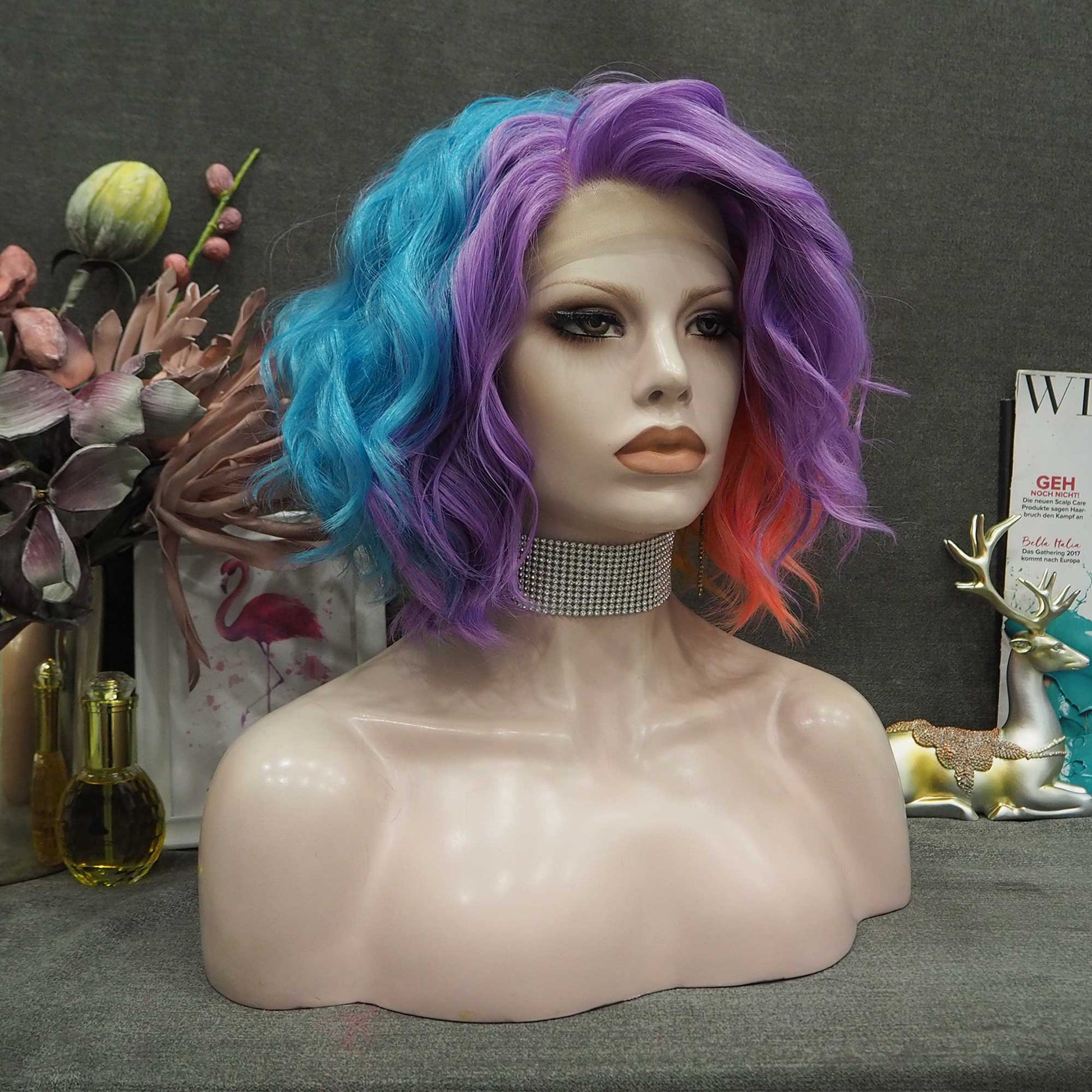Celebrity Wig New Designed rainbow highlighted color Daily life Wearing futura Henlon fiber Synthetic Lace front Wigs