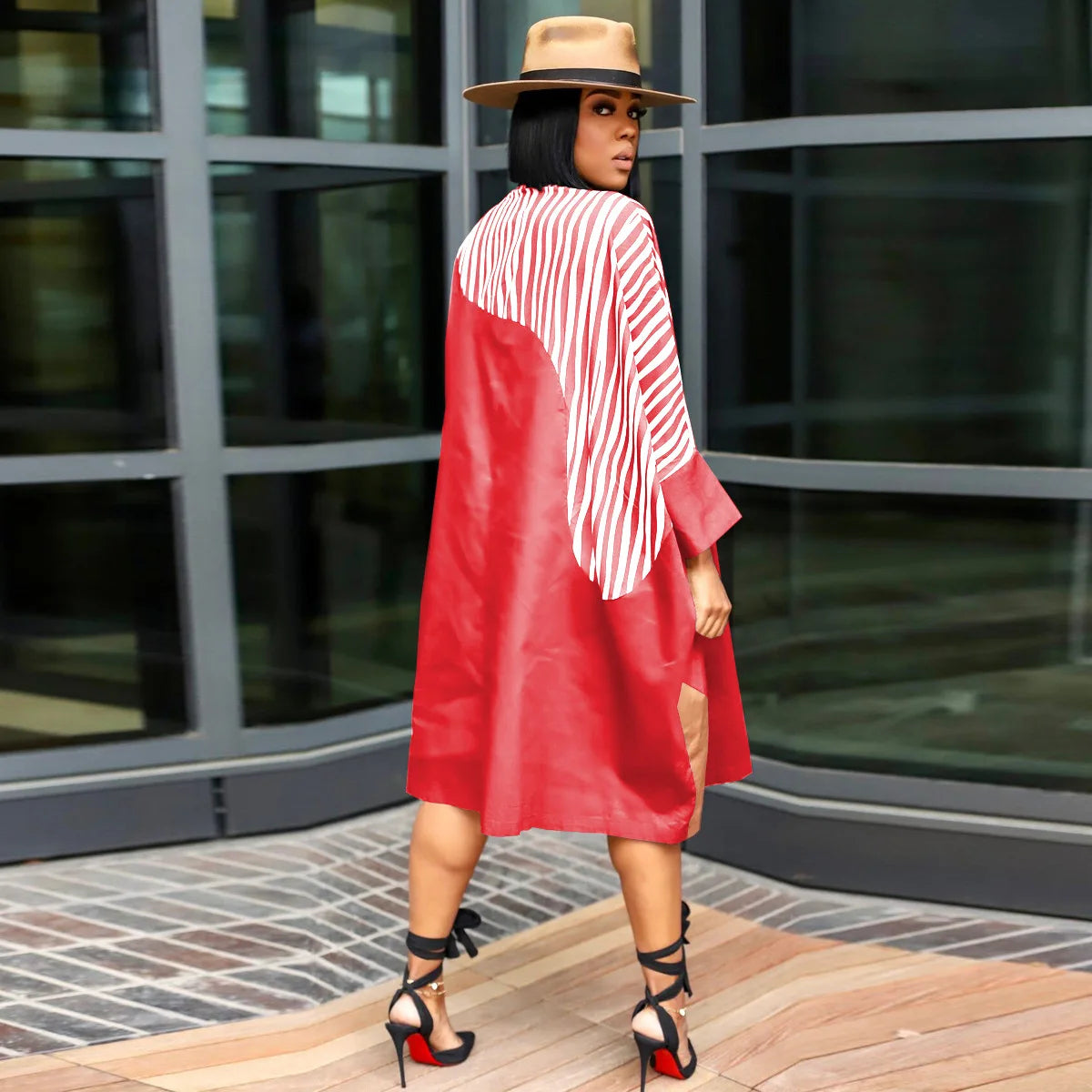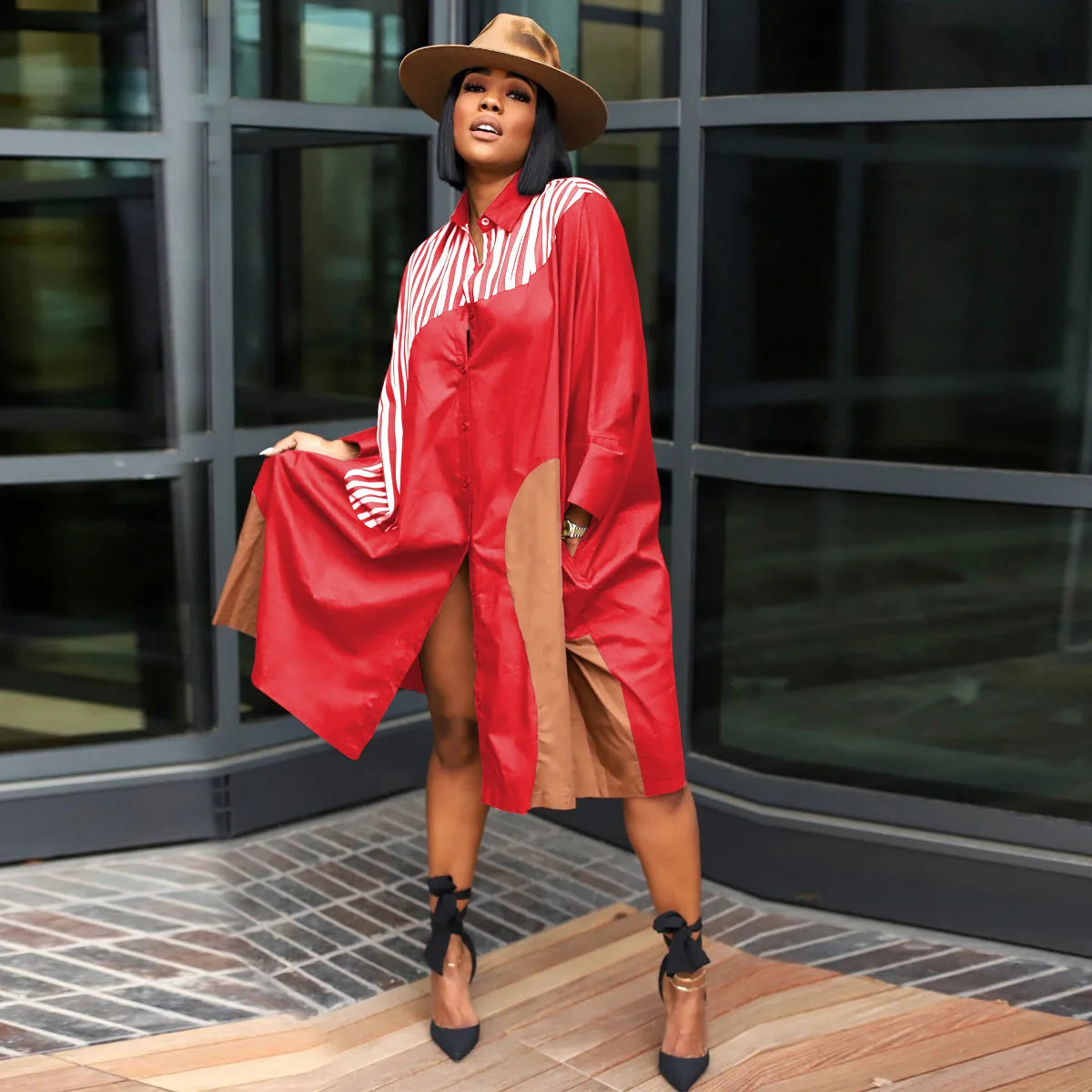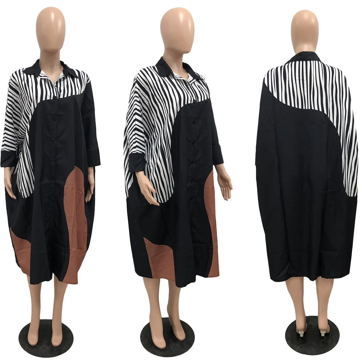 CM.YAYA Elegant Patchwork Women Long Sleeve Single Breasted Loose Shirt Dress Street Fashion Slim Striped Smock INS Dresses
