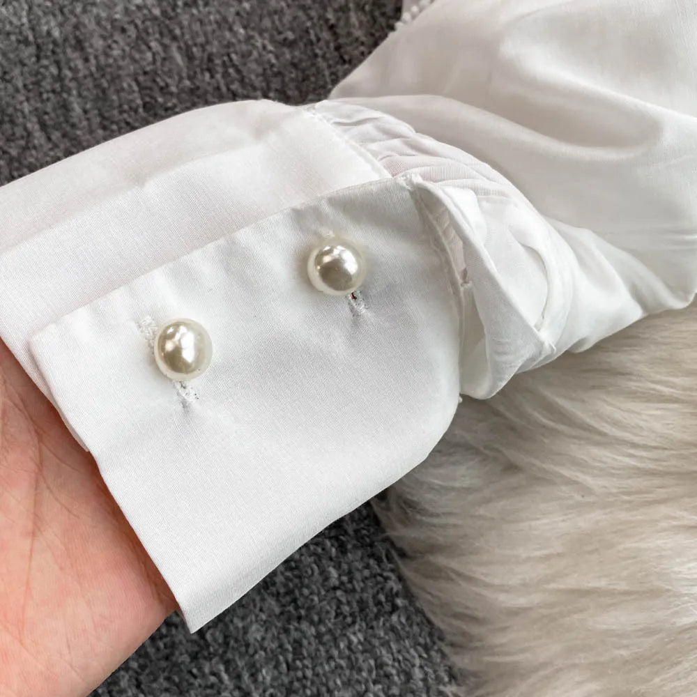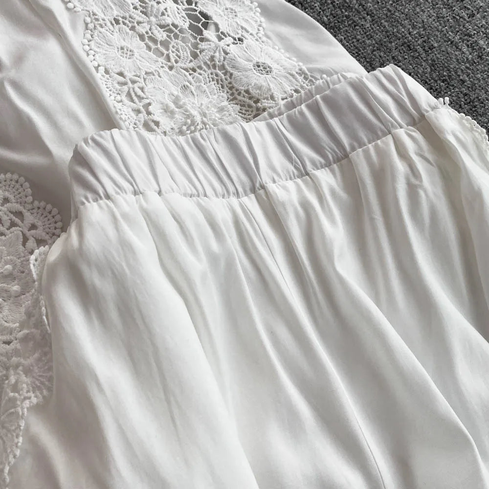 CM.YAYA Fashion Lace Embroidery Patchwork Women's Set Long Sleeve Shirt and Wide Leg Pants 2025 Vacation Two 2 Piece Sets Outfit