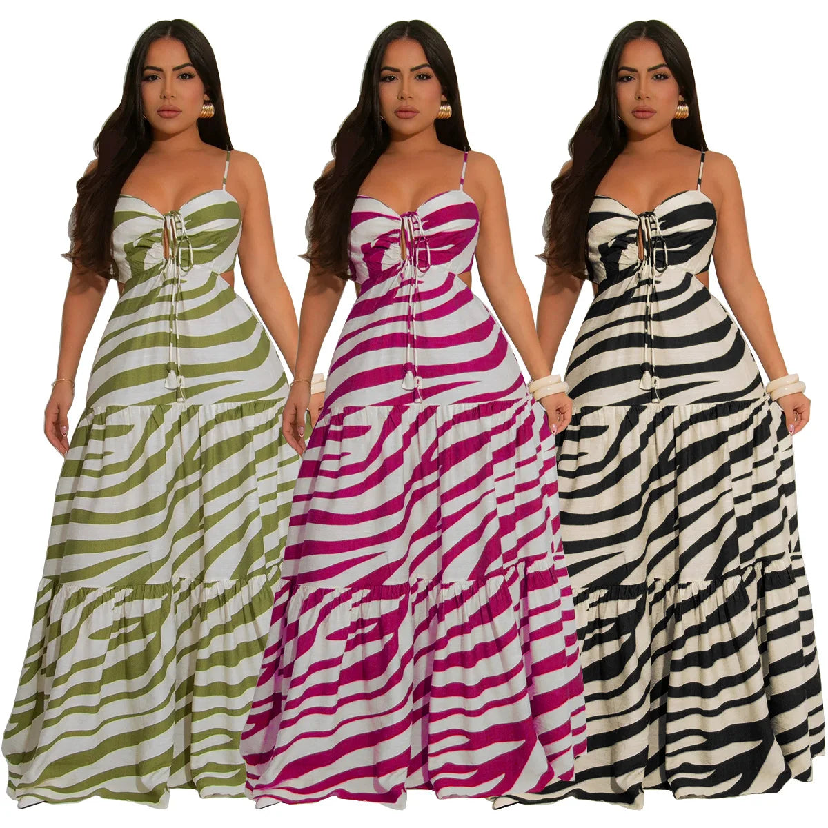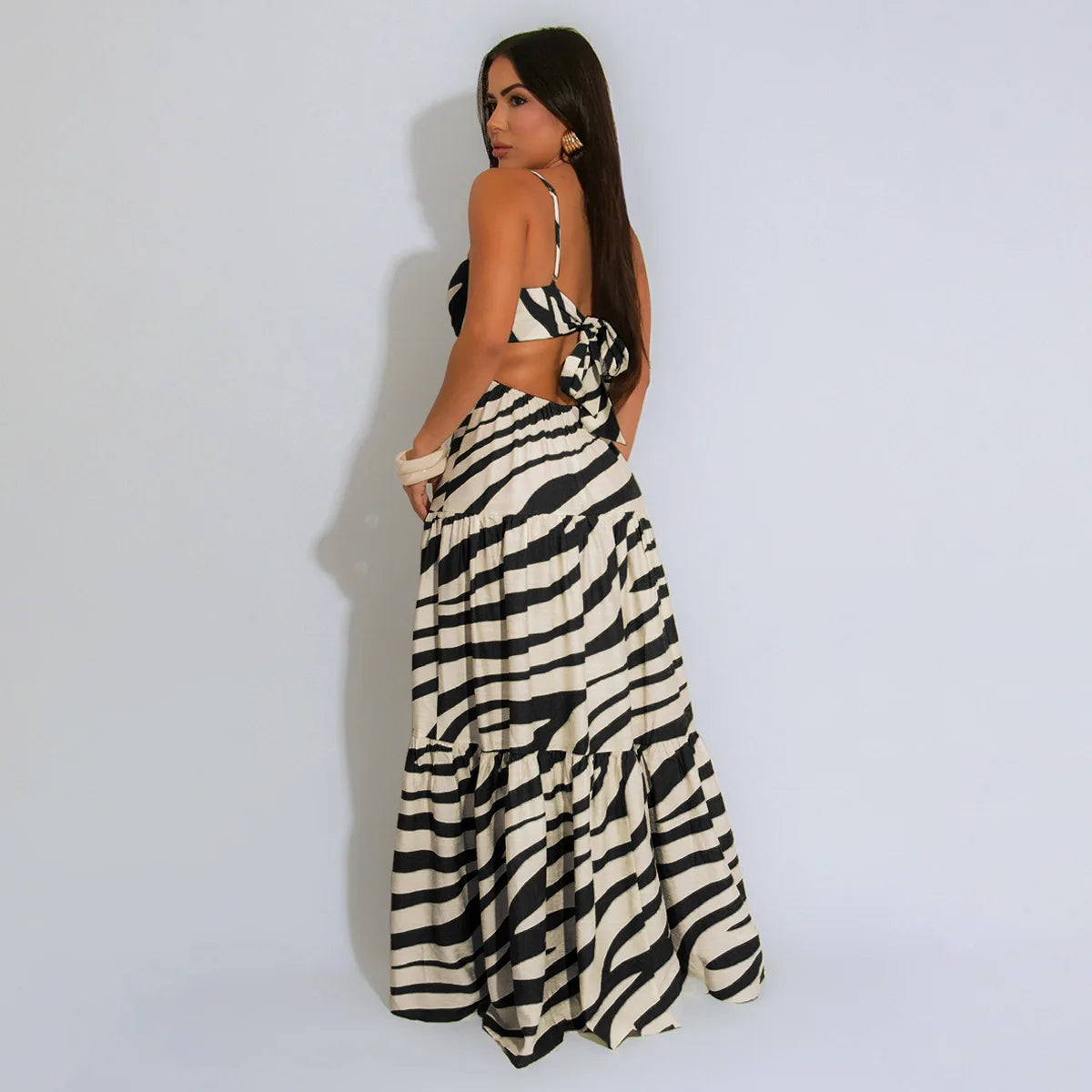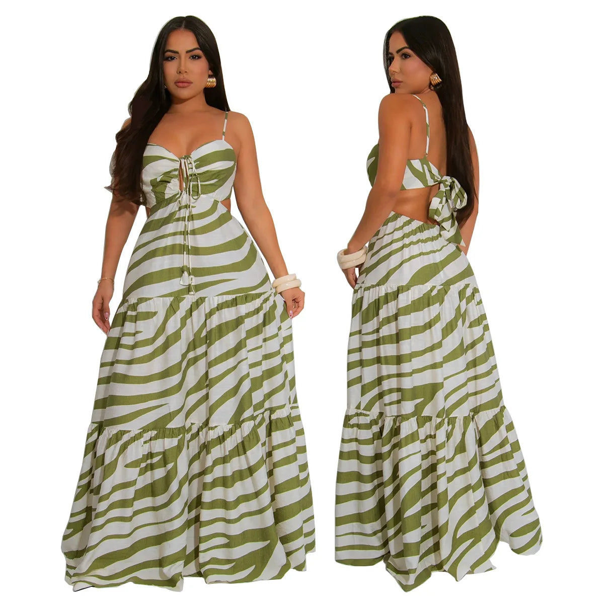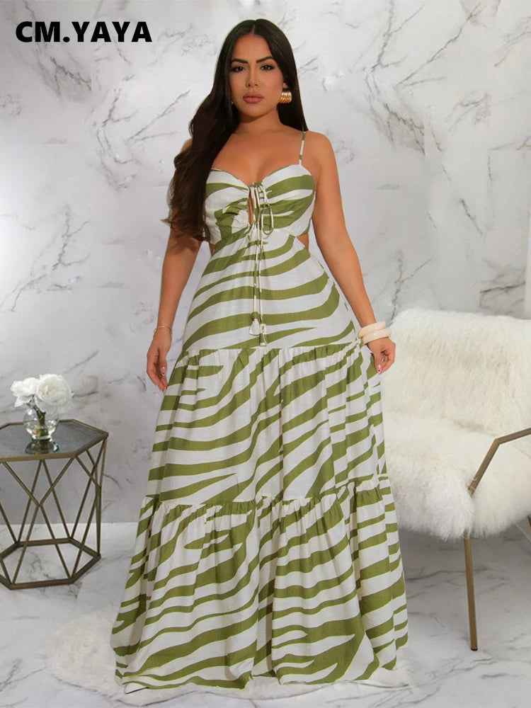 CM.YAYA Printed Women Strap Sleeveless Backless Long Dress 2025 Birthday Beach Evening Sexy Night Party Maxi Dresses Vestidos