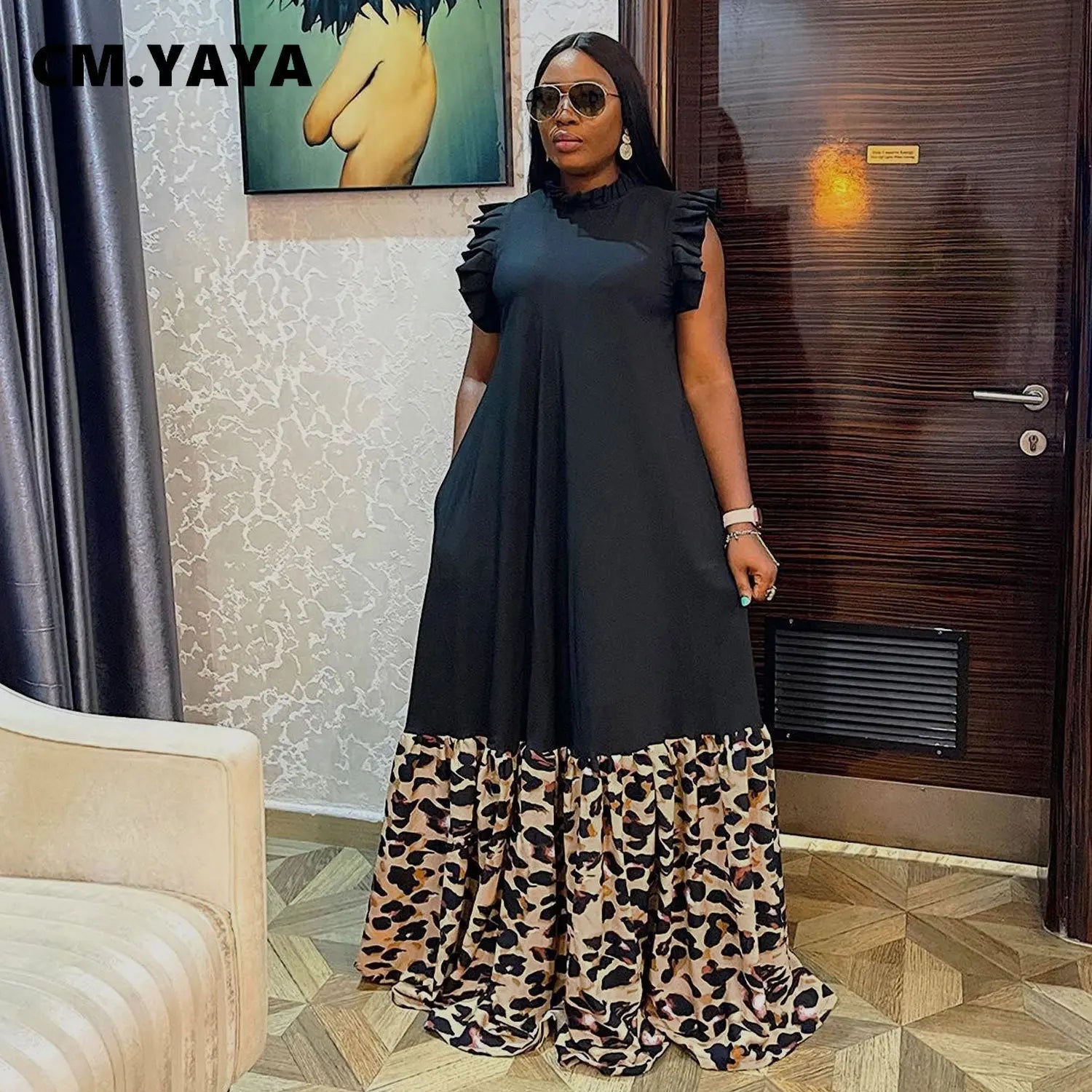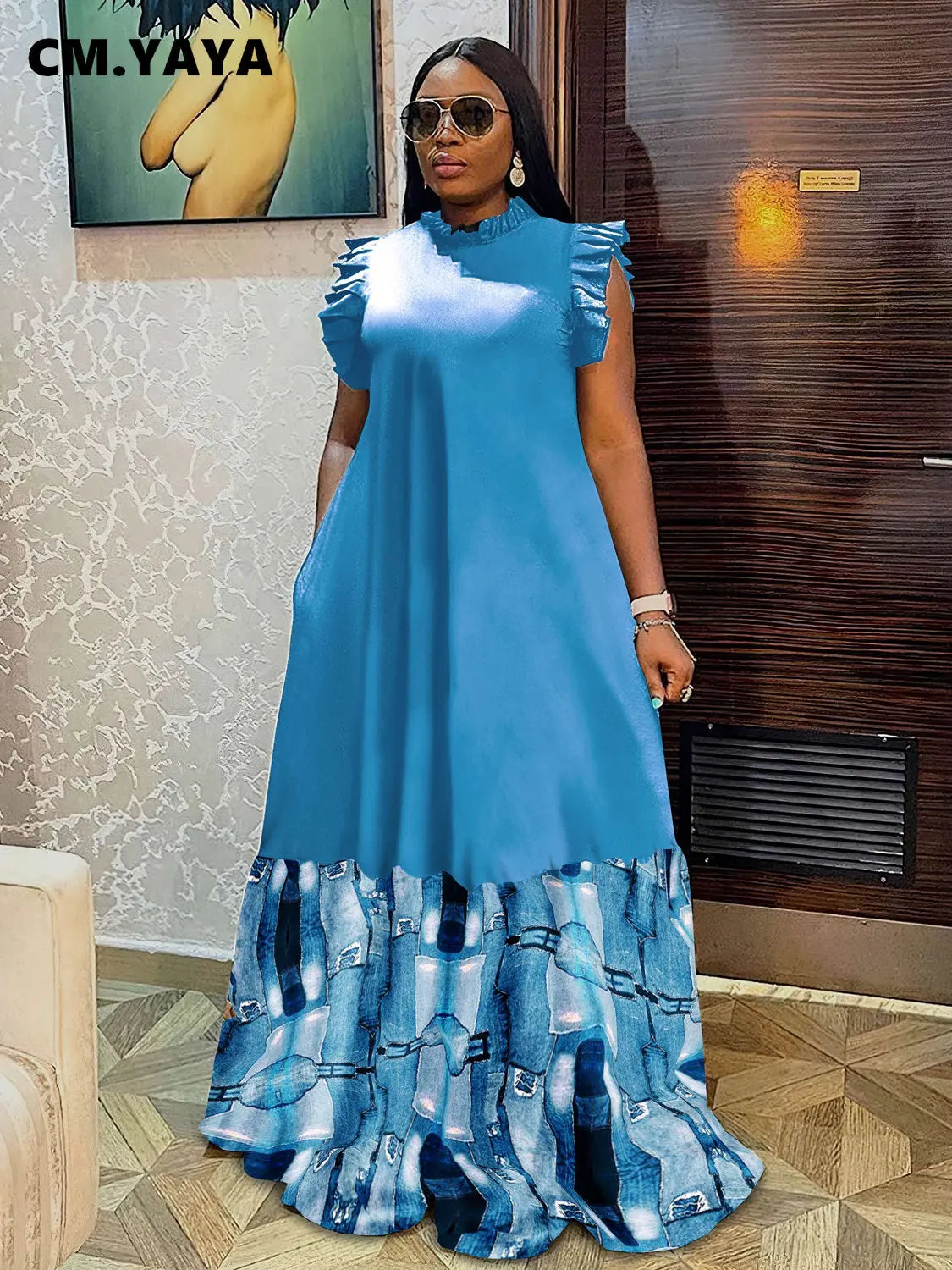 CM.YAYA Women Edible Tree Fungu Camouflage Patchwork Maxi Long Loose A-line Dress 2023 Vintage INS Evening Dresses Vestidos