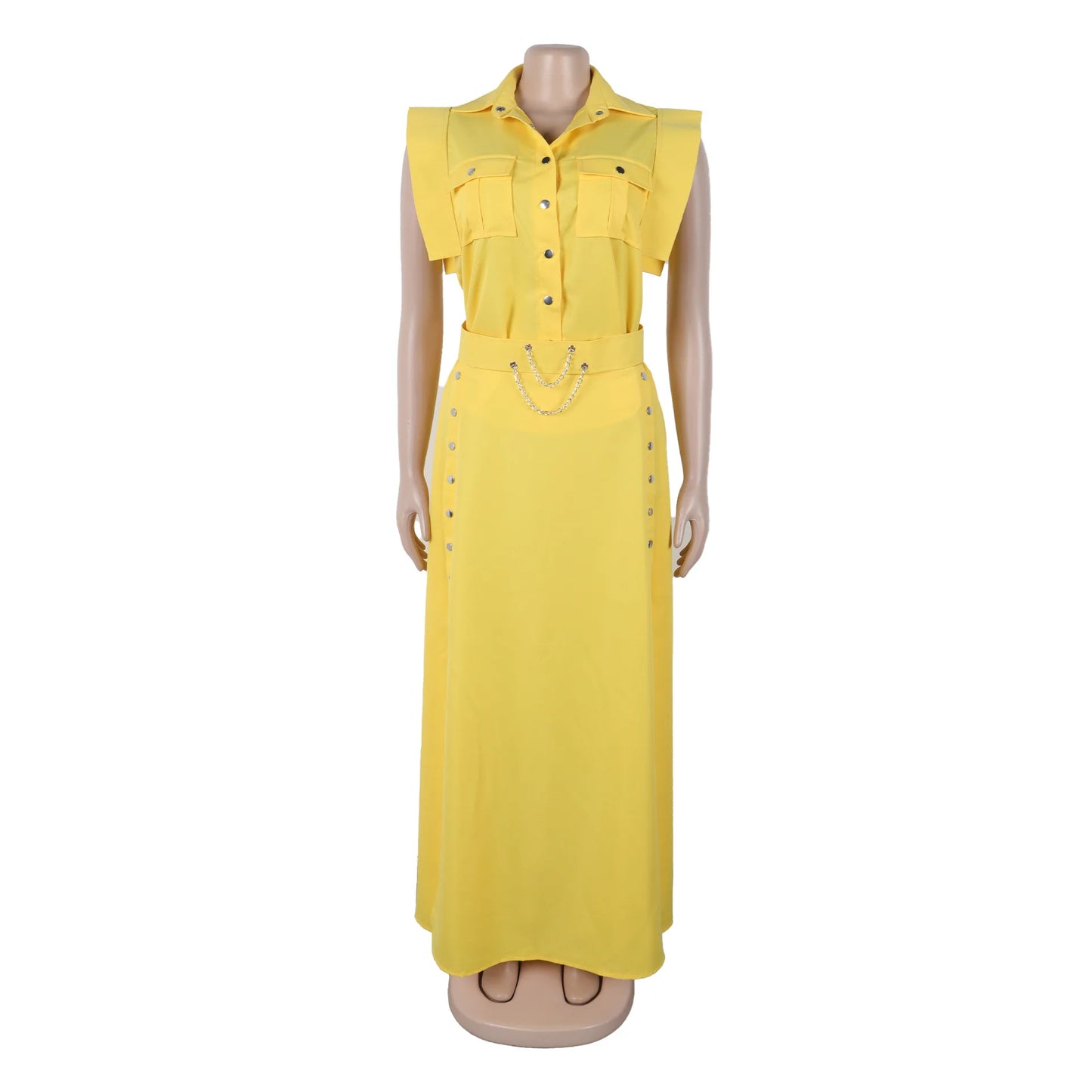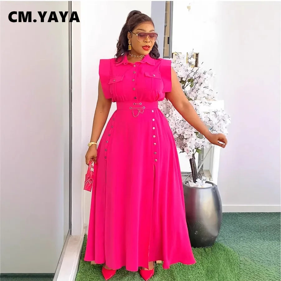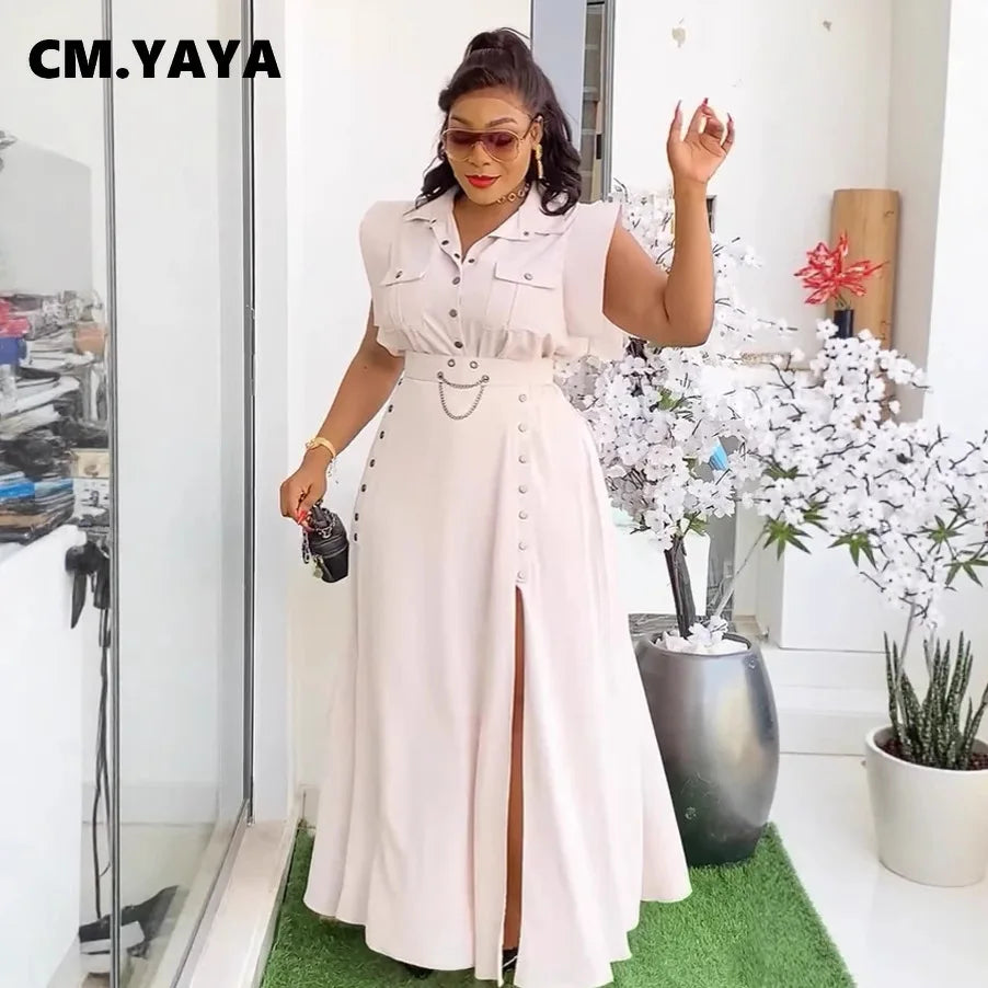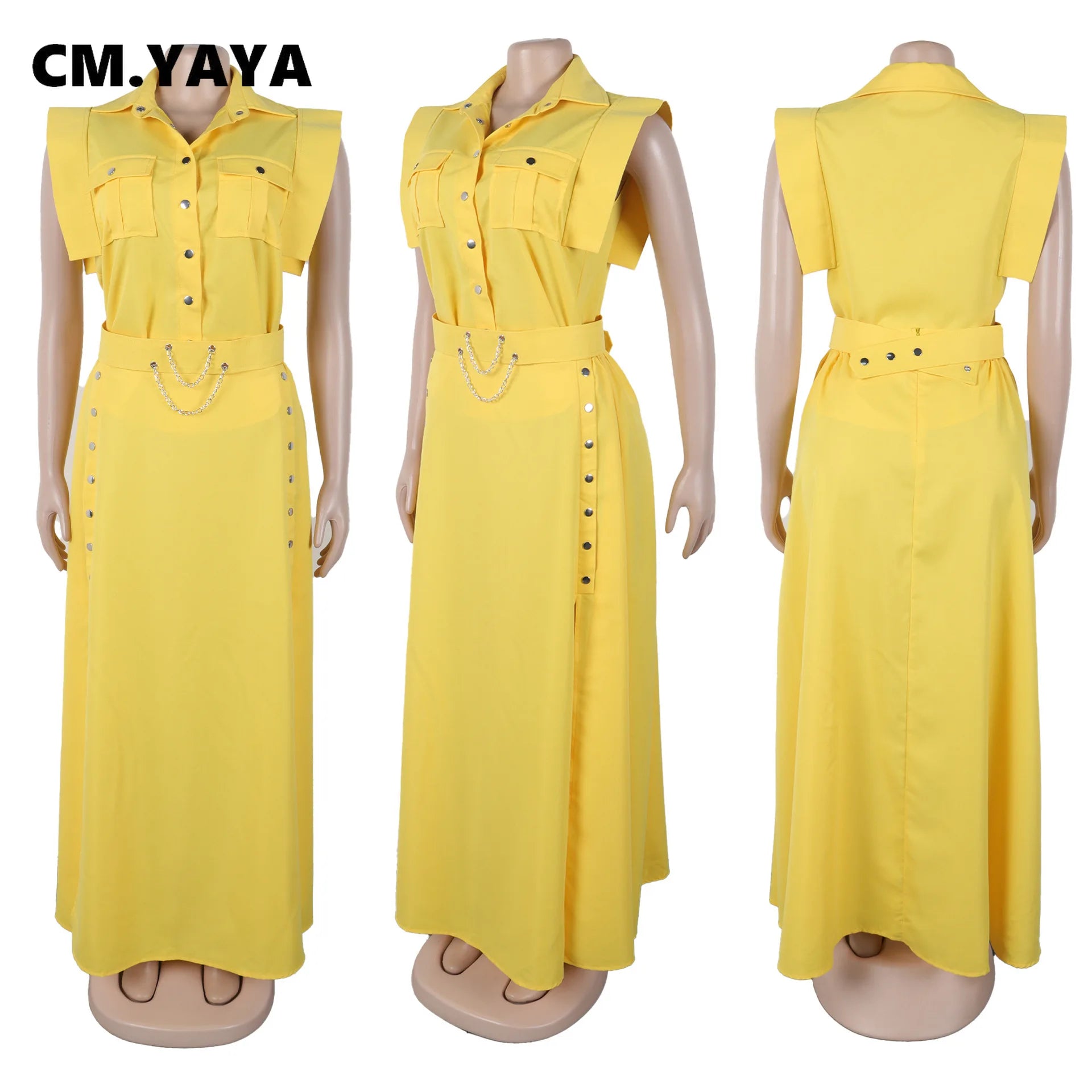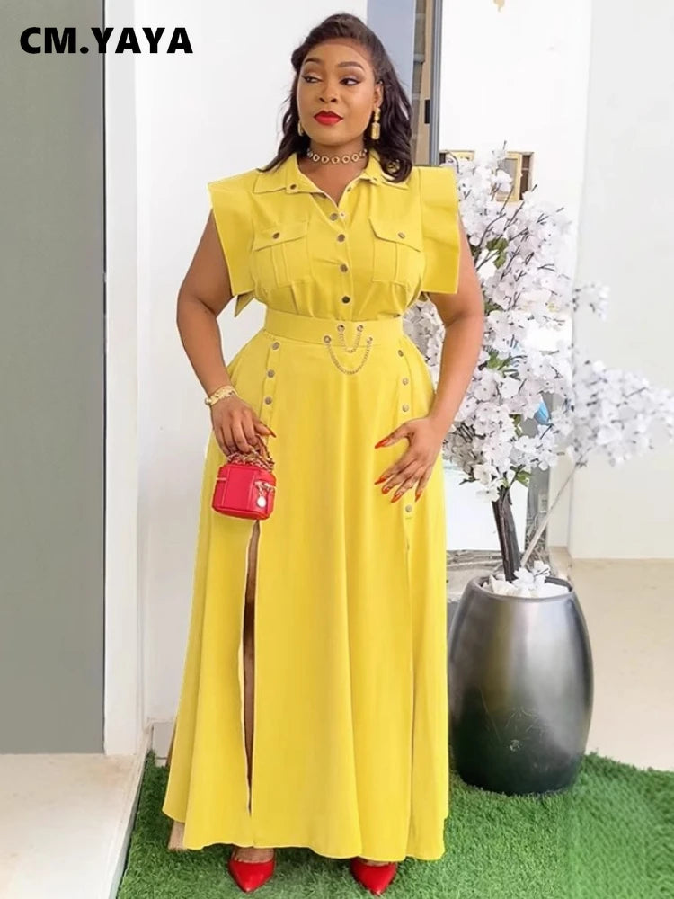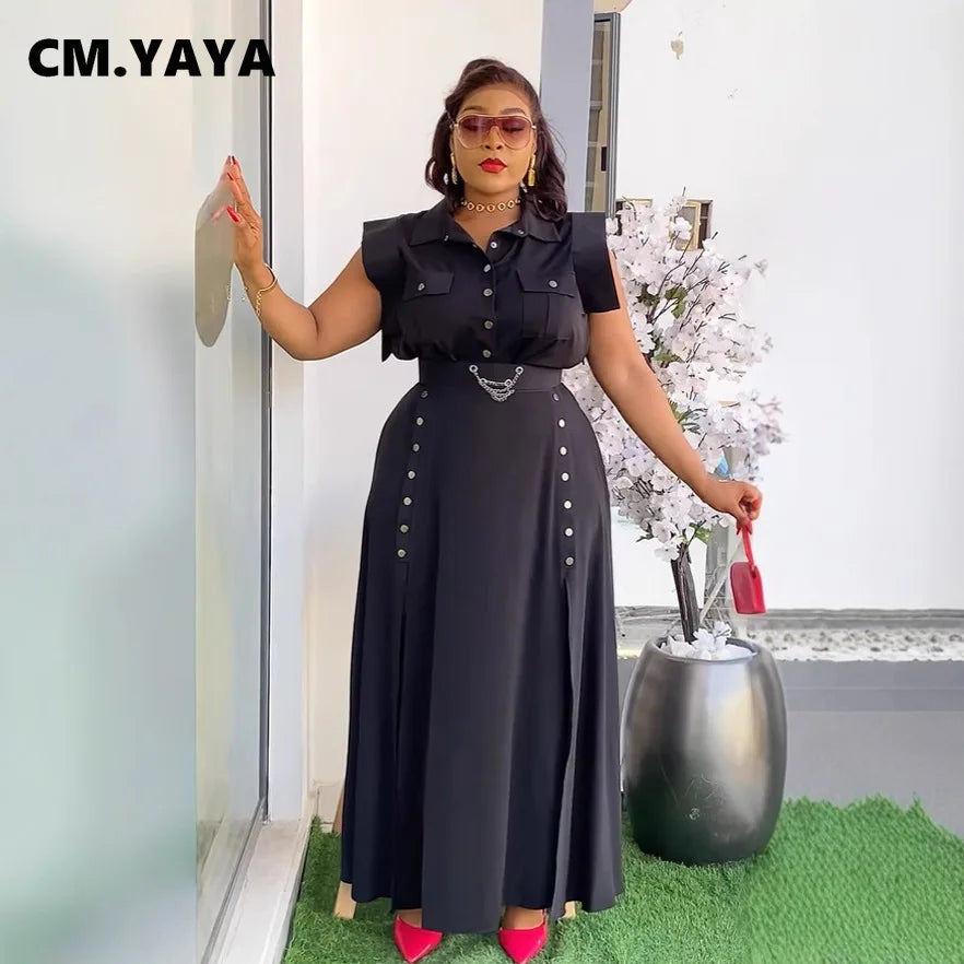 CM.YAYA Women's Set OL Sleeveless Shirt + Cargo Split Long Skirts Suit 2025 Summer Party Evening Street Two 2 Piece Set Outfits