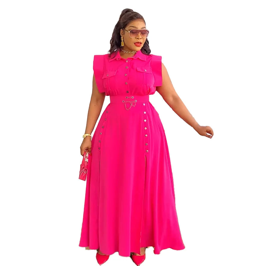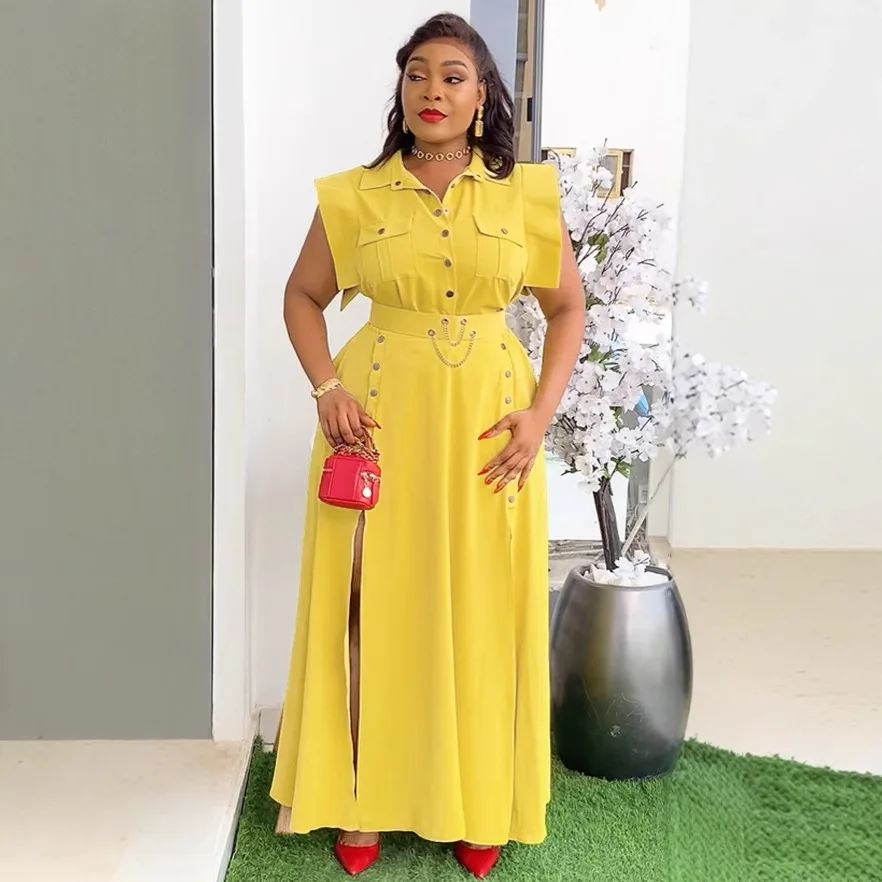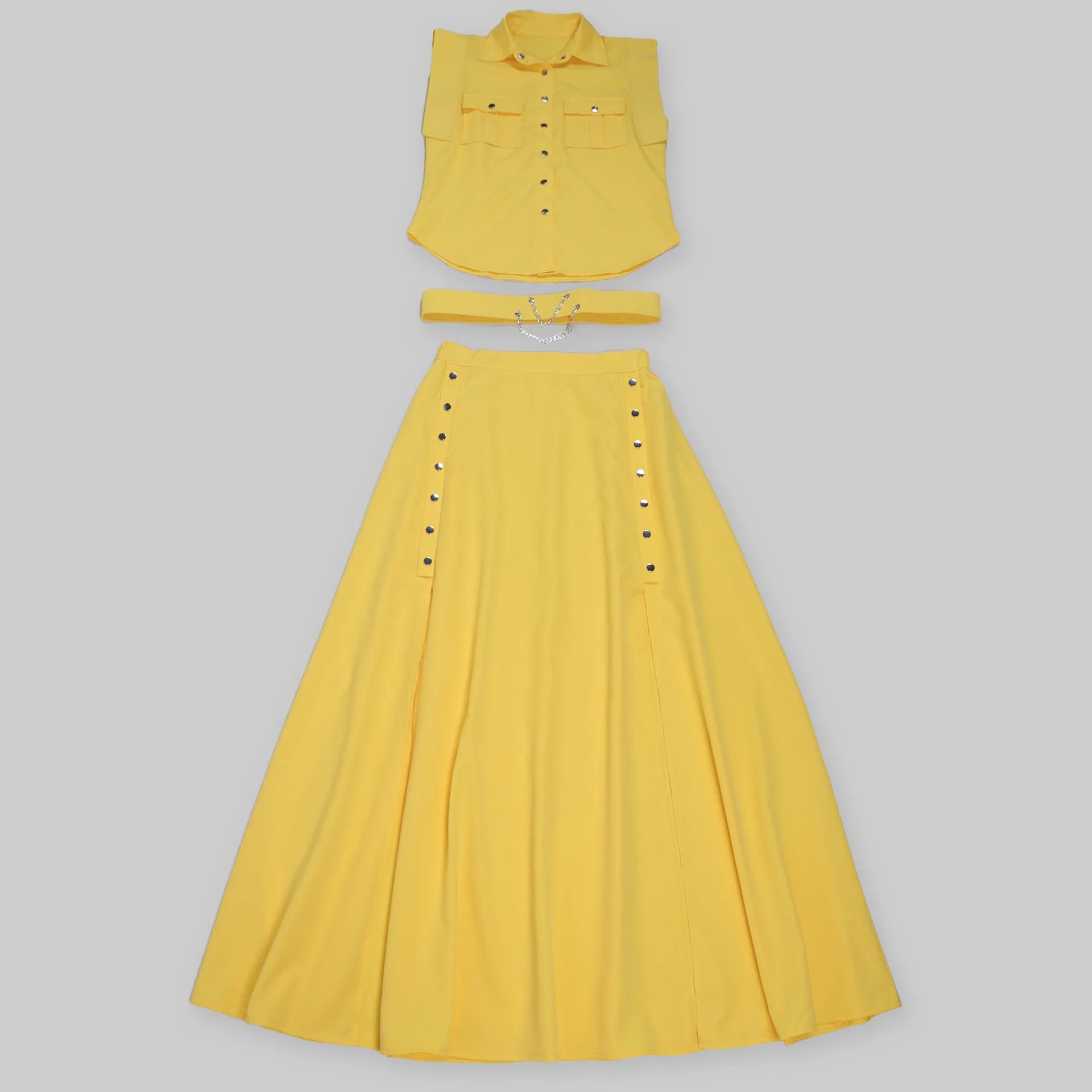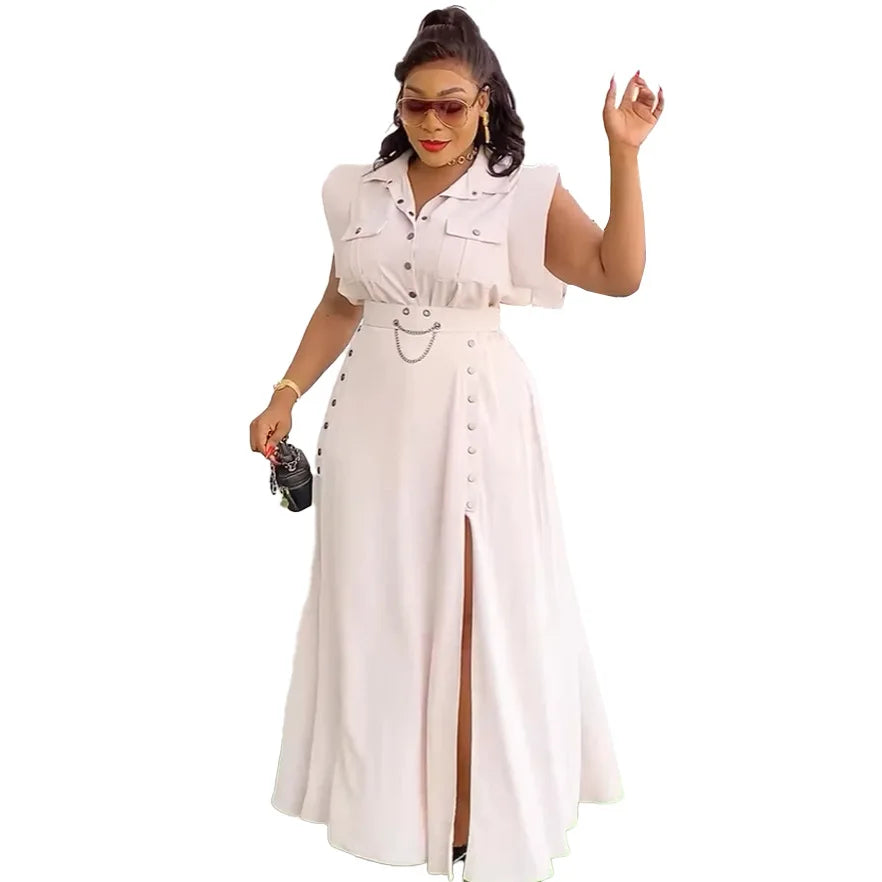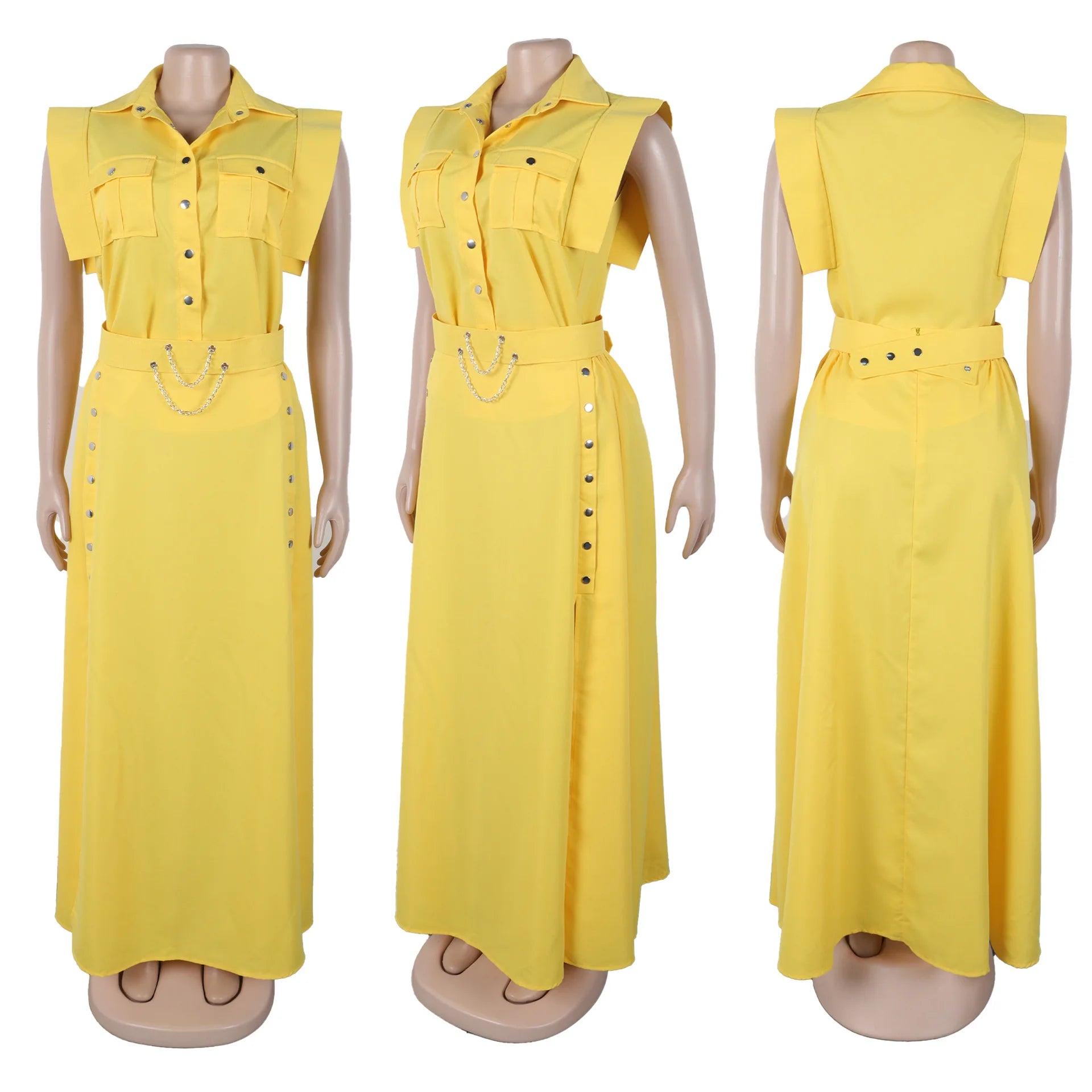 CM.YAYA Women's Set OL Sleeveless Shirt + Cargo Split Long Skirts Suit 2025 Summer Party Evening Street Two 2 Piece Set Outfits