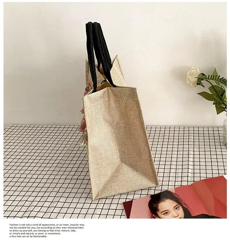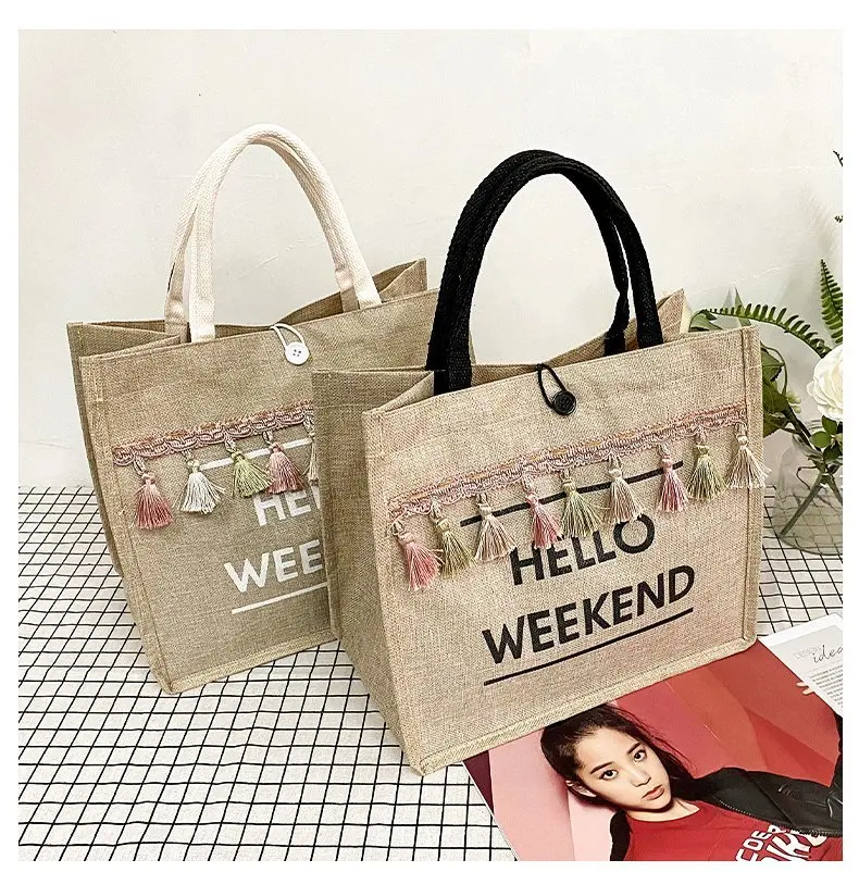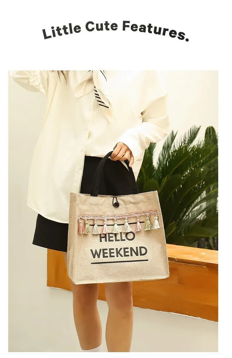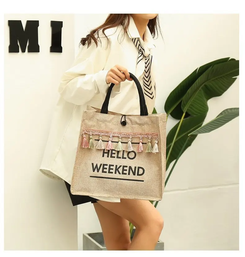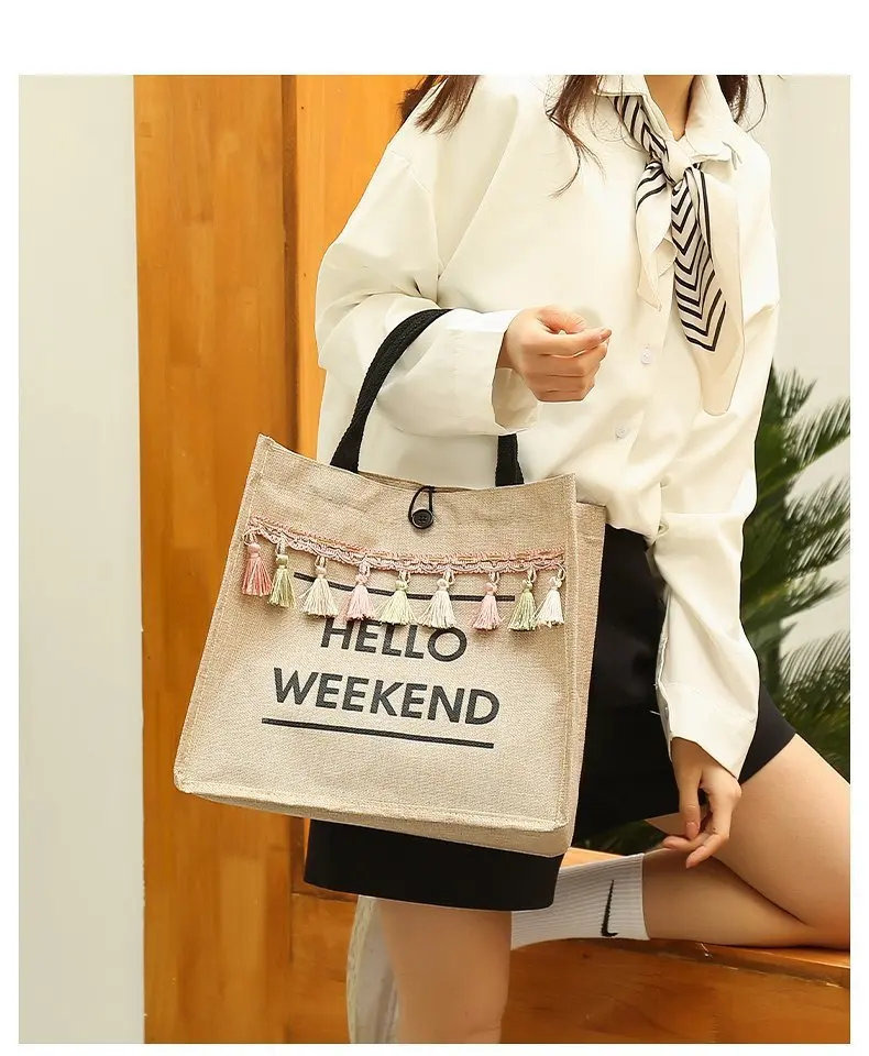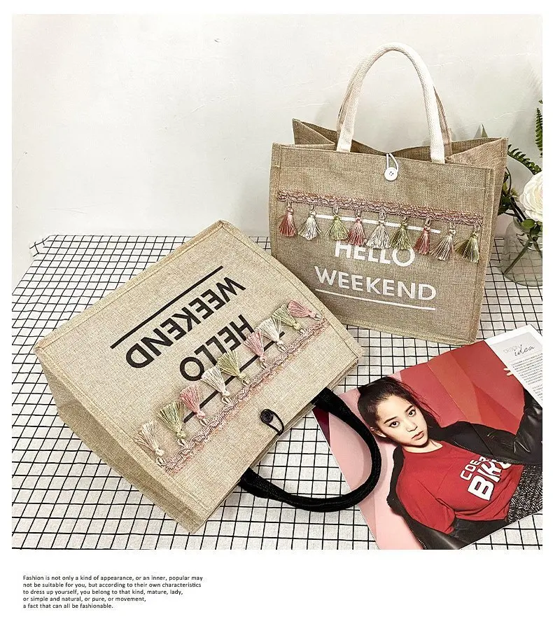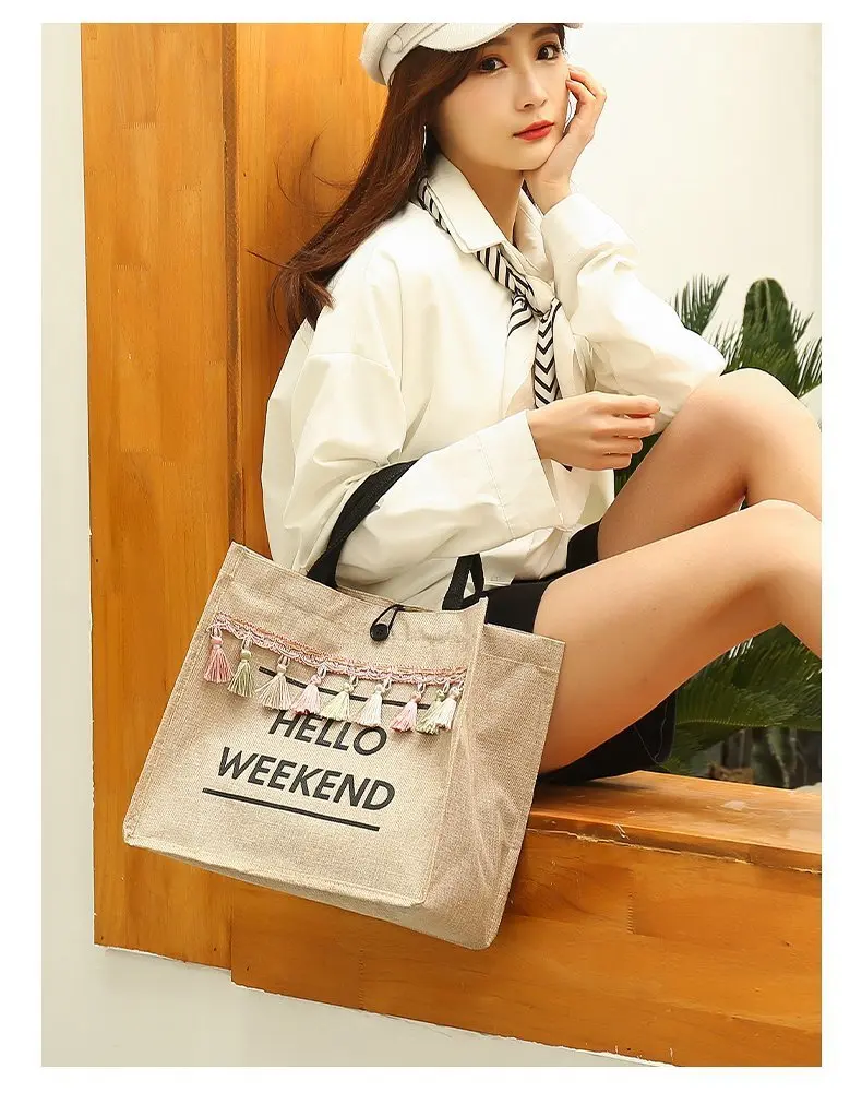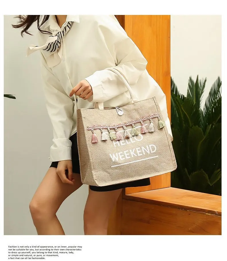 Versión coreana creativa de la tendencia bolso de mano de lona de compras de lujo de gran capacidad con borla simple personalizado