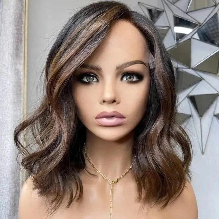 Custom Baby Blonde Highlight Color Short Bob Cut Wig Salon Quality Virgin European Cuticle Human Hair Lace Top Jewish Wigs