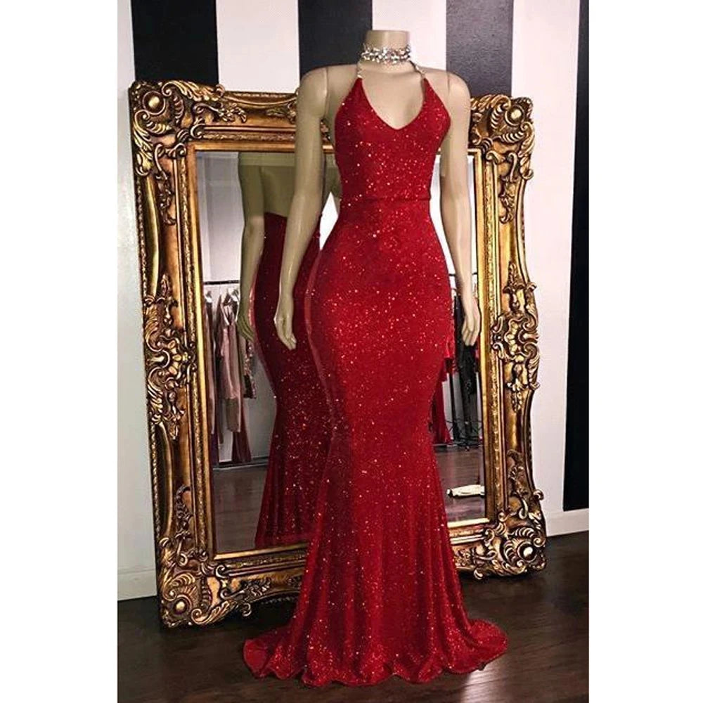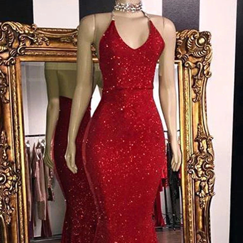 Customized Backless Halter Sparkly Sequined Evening Dresses For Women Mermaid Robe De Soiree Prom Gown Wedding Party Vestidos