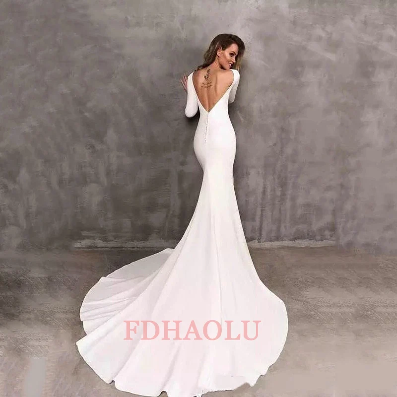 Customized FDHAOLU FU16 White Mermaid Wedding Dresses Long Sleeve Elegant Boho Satin Bride Dress Wedding Gowns Vestido De Noiva