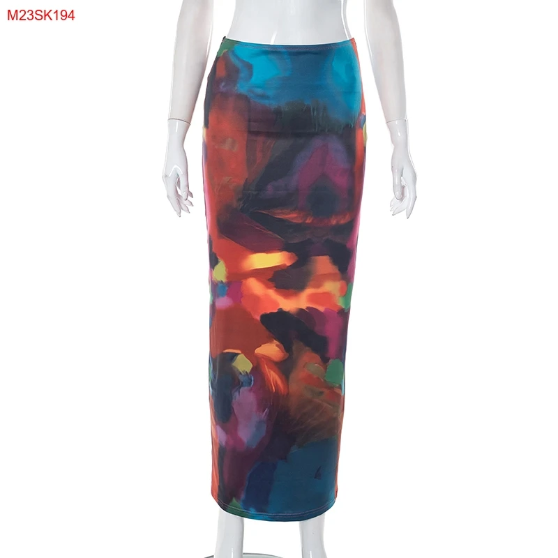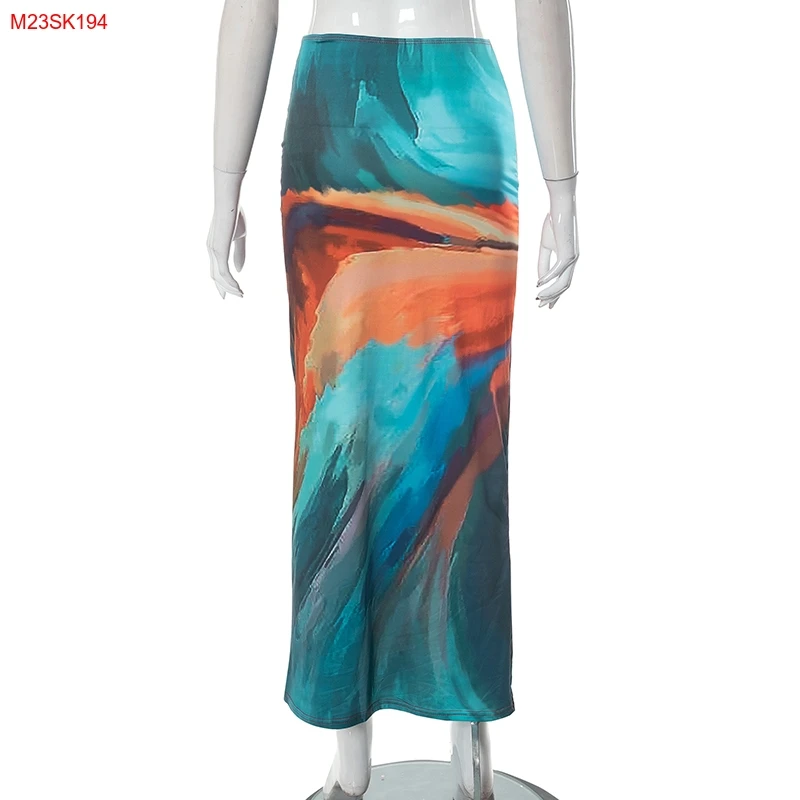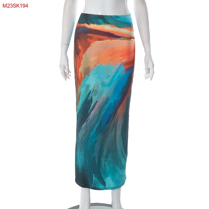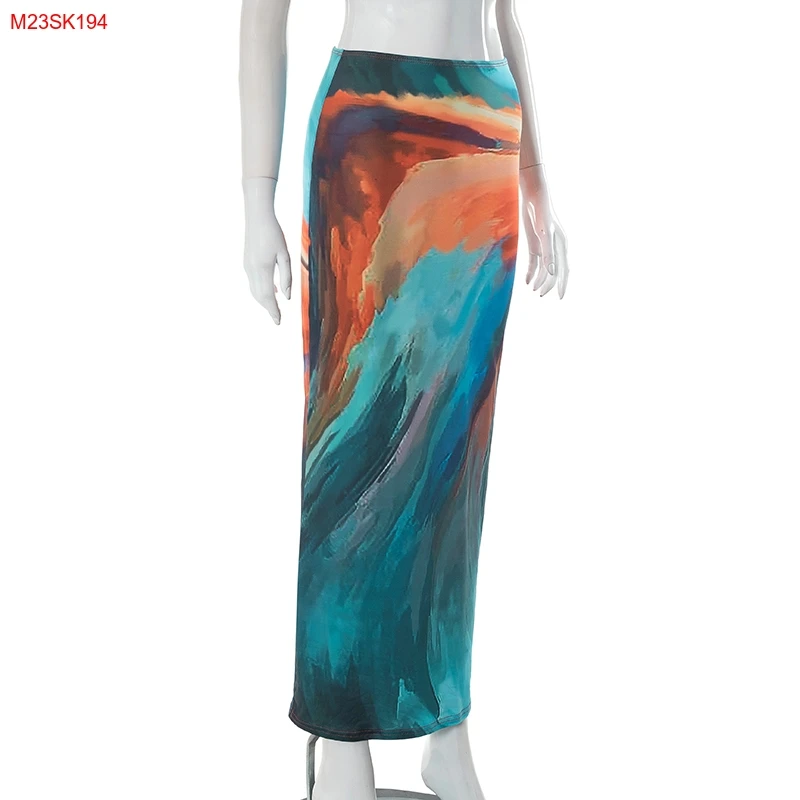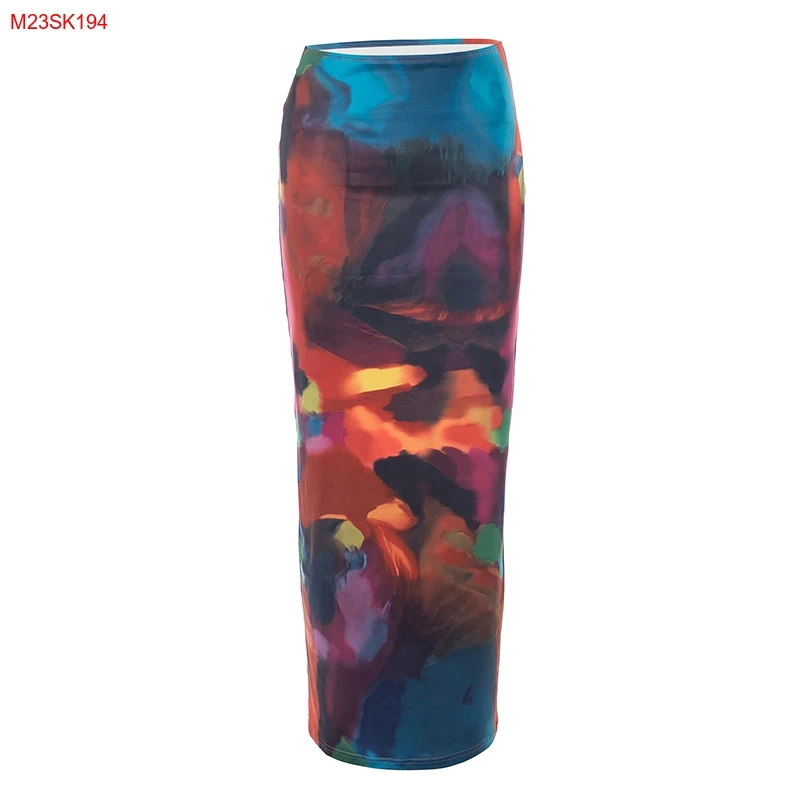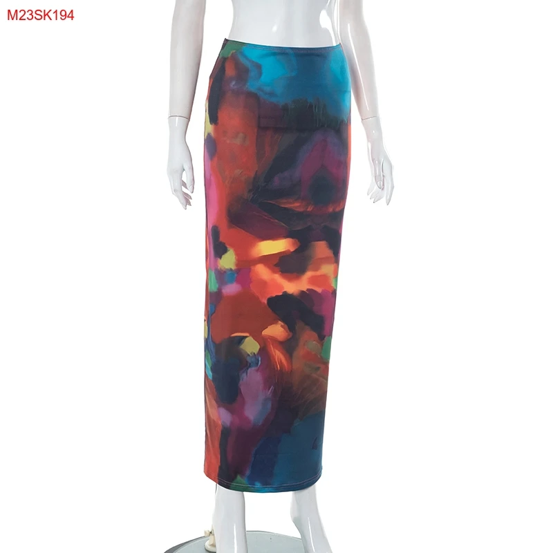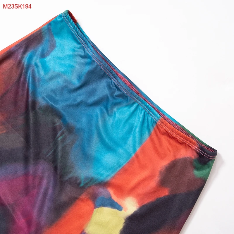 Cutenova M23SK194 2023 Summer Holiday Style Multicolor Printed Mesh Long Skirt Plus Size Womens Skirts