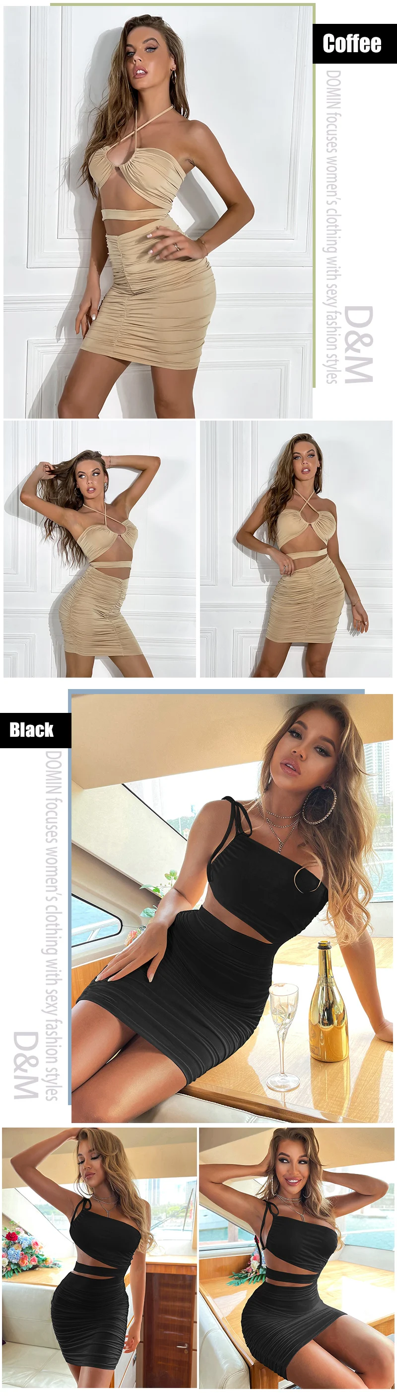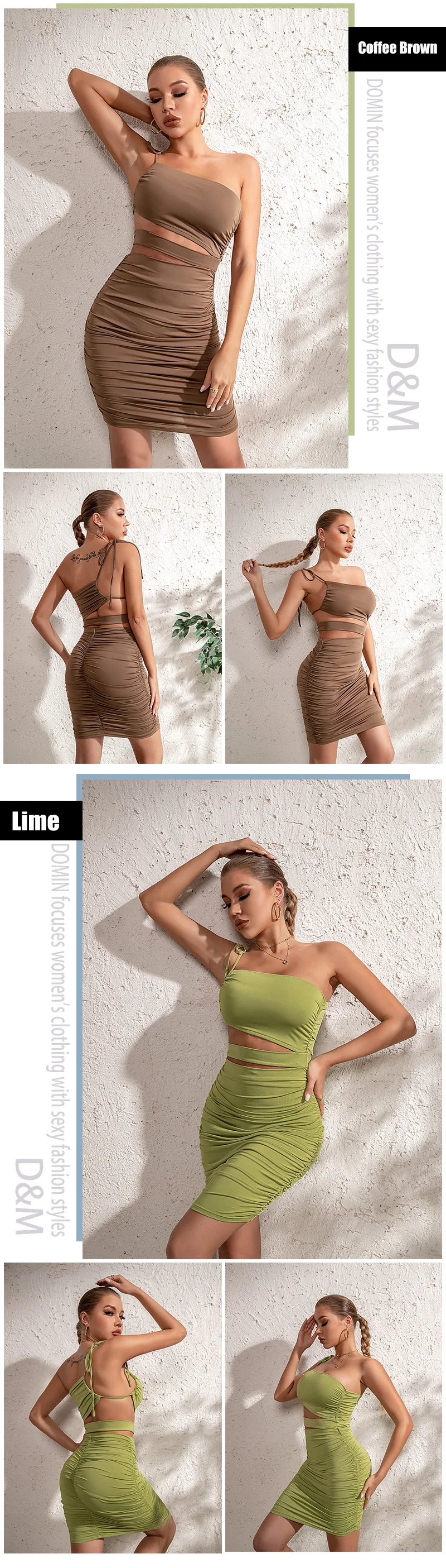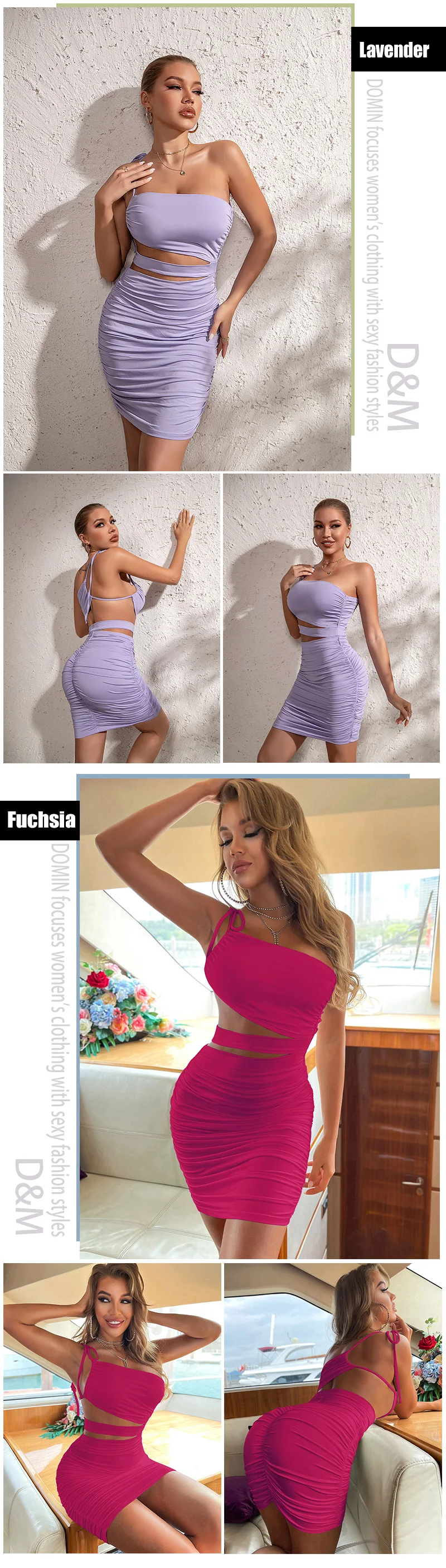 D&M Hot Sell 2024 New Sexy One Shoulder Ruched Sheath Dress Women Mini Length Cut Out Waist Scrunch Butt Bodycon Dress