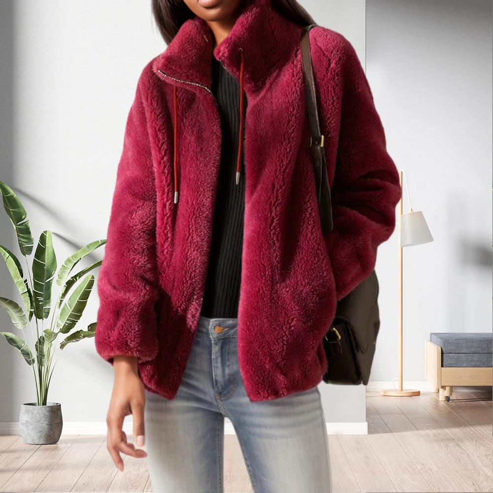 D1201ME53 Autumn Winter Coat Fleece Shaggy Warm Cropped Plus Size Fur Coat Overcoat Zipper Outwear Sehefashion