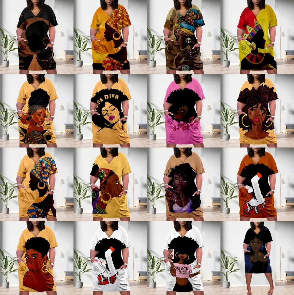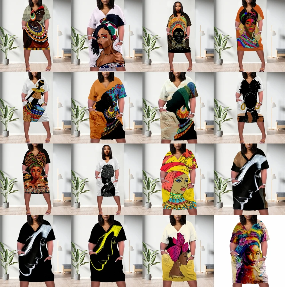 D1202ME08 Direct Sales Plus Size V-neck Short Sleeve Floral Print Midi Women Dress Sehe Fashion