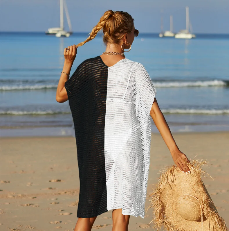 DAMOCHIC Knitted Cardigan Swimsuit cover ups Summer Hollow out Beach cover ups Color splicing Bathing Suit Blouse 2023 Supplier