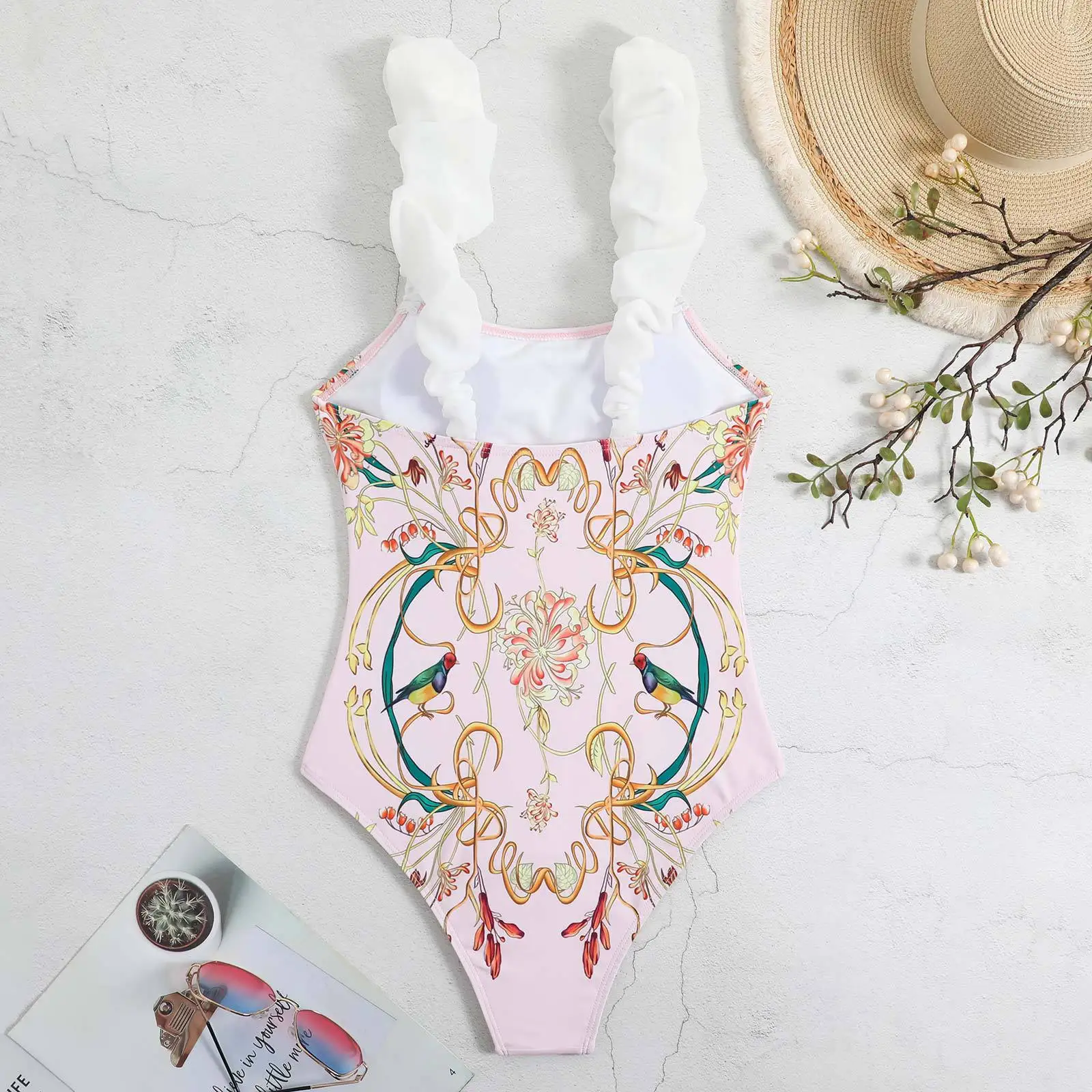 DAMOCHIC Sexy V Neck 1 Piece Bathing Suits Cover Set Print Two Piece Tummy Control Vintage Swimsuit with Sarong Cover Up 2023 Supplier