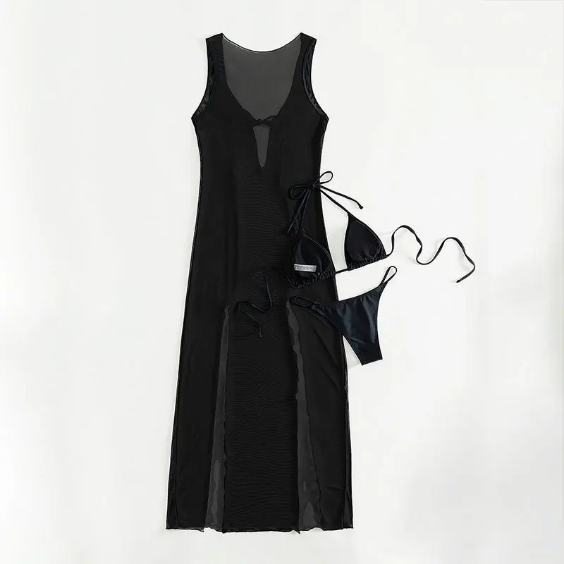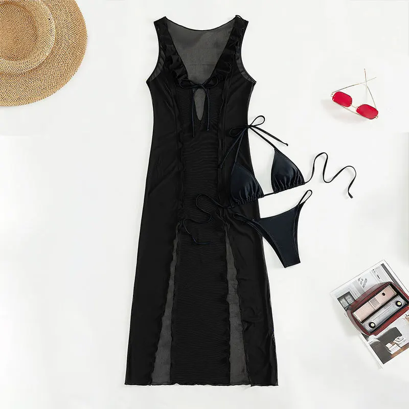DAMOCHIC Sun screen three-piece set Swimsuit Summer Solid color Bathing Suit Halter&Lace up Beachwear for women 2023