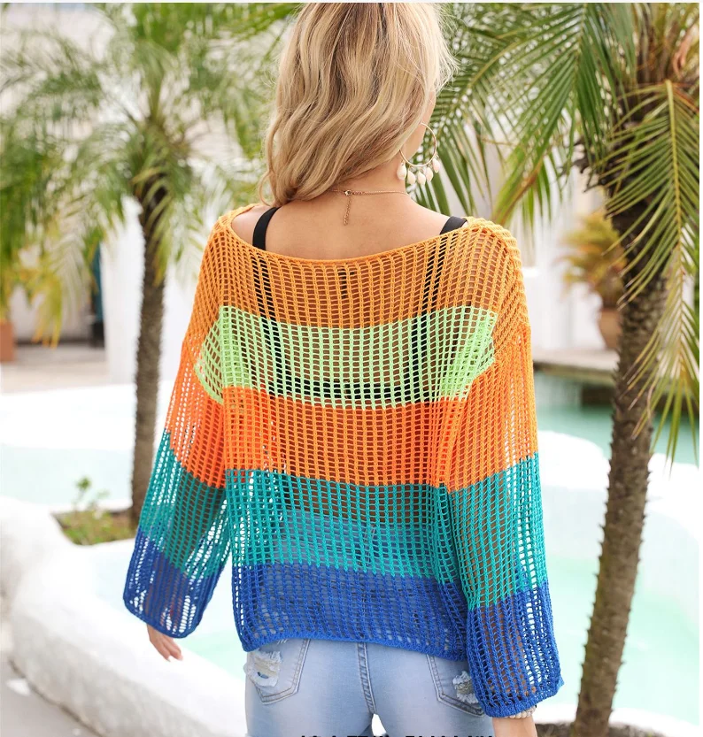 DAMOCHIC Swimwear cover up for women Summer Long sleeves The hood beachwear cover ups Rainbow Hollow out Bikini cover ups 2023 Supplier