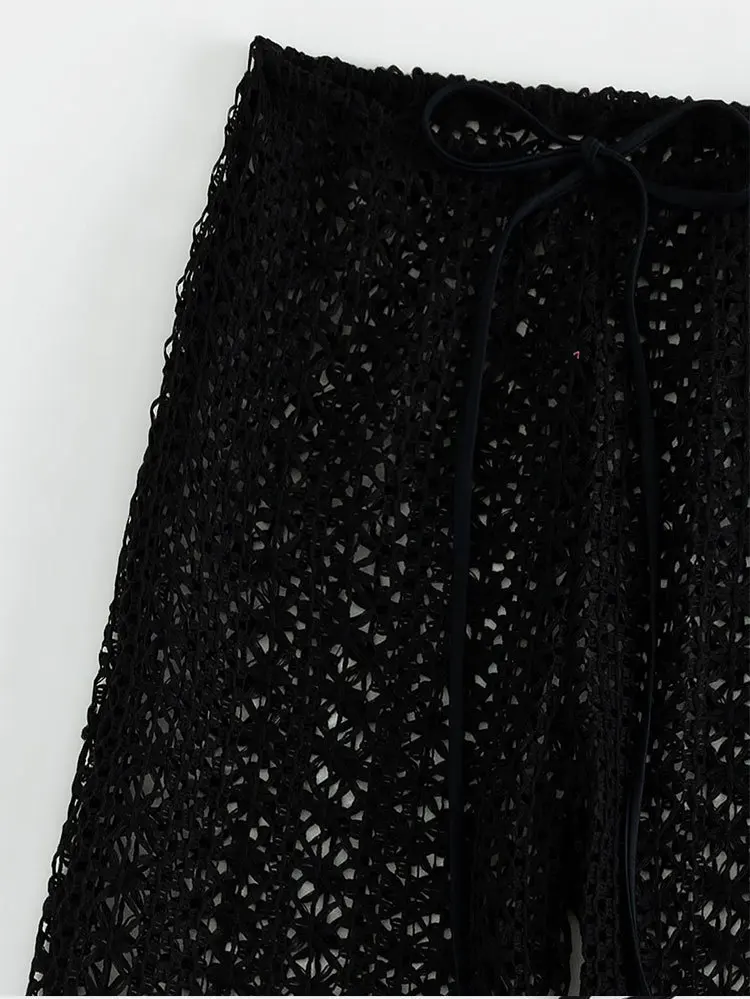 DAMOCHIC Three-piece set Swimwear Summer Halter&Lace up Backless Bikini Solid color Hollow out pants Beachwear 2023