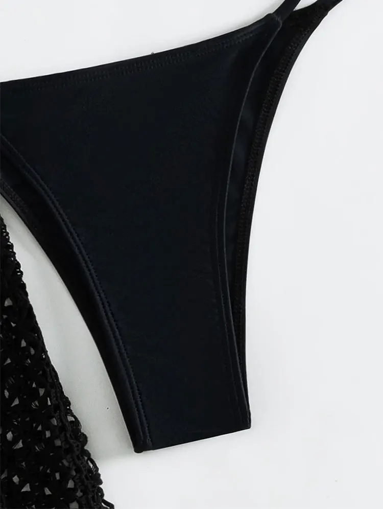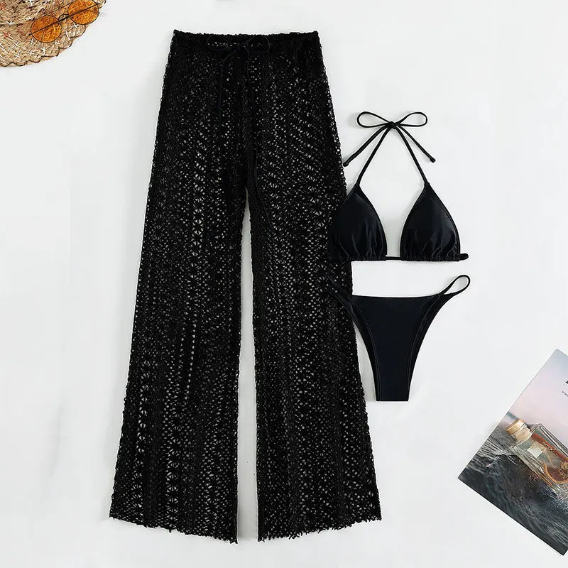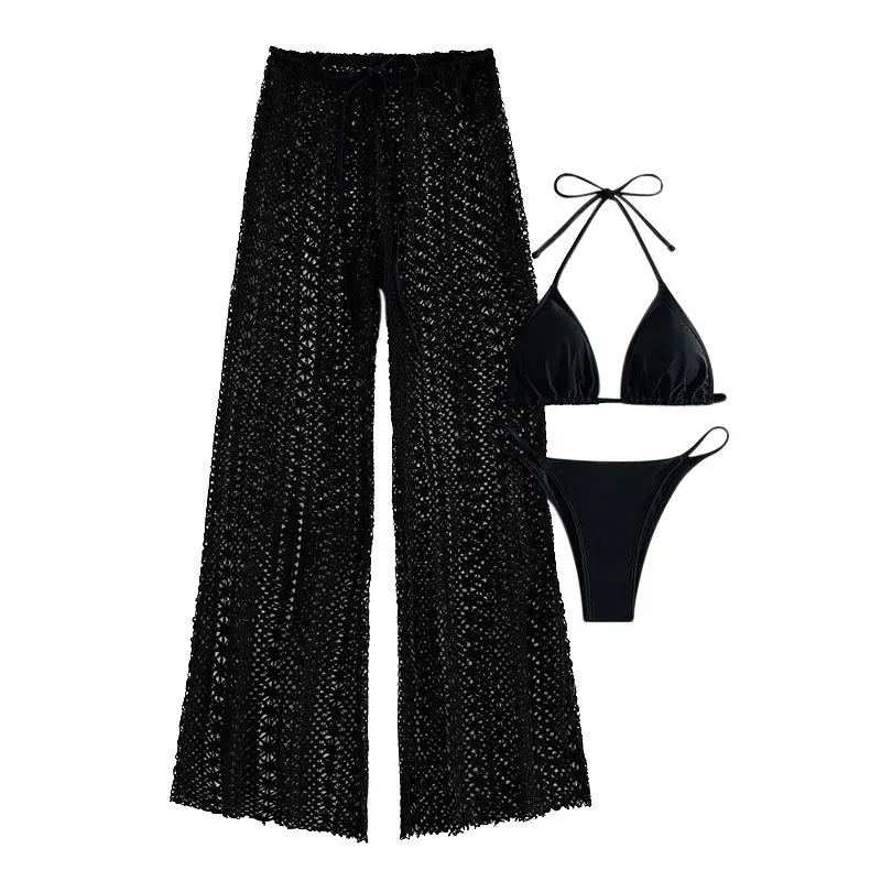 DAMOCHIC Three-piece set Swimwear Summer Halter&Lace up Backless Bikini Solid color Hollow out pants Beachwear 2023 Supplier