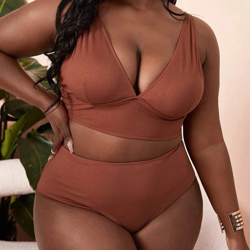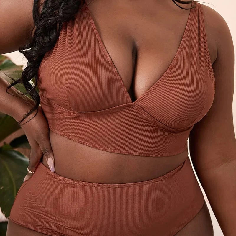 DAMOCHIC Two Piece Ribbed Swimwear Large High Waist Push Up V Neck Beach Wear for Fat Women Plus Size Swim Suits Bikini Set 2022 Supplier