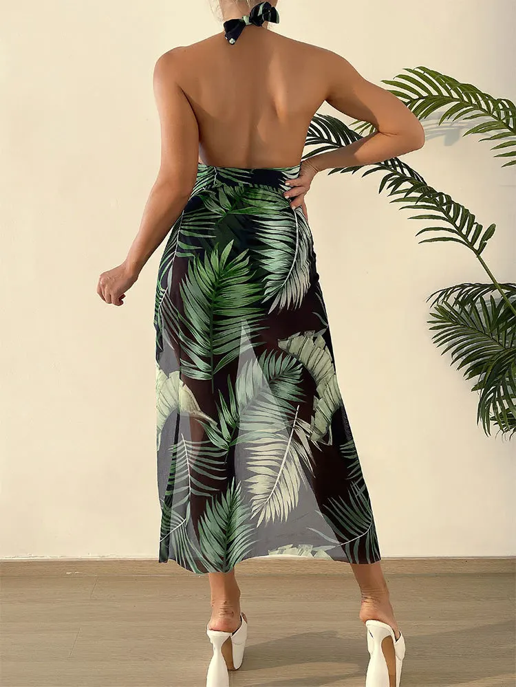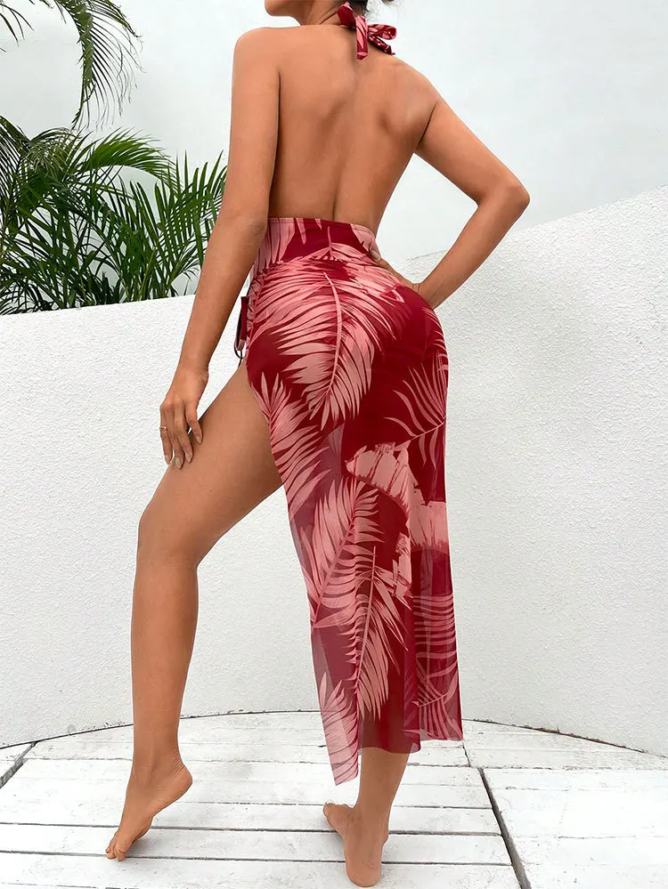 DAMOCHIC Wholesale Cardigan backless swimsuit for women Summer Halter&Lace up Bathing Suit Backless Stamp Beachwear 2023