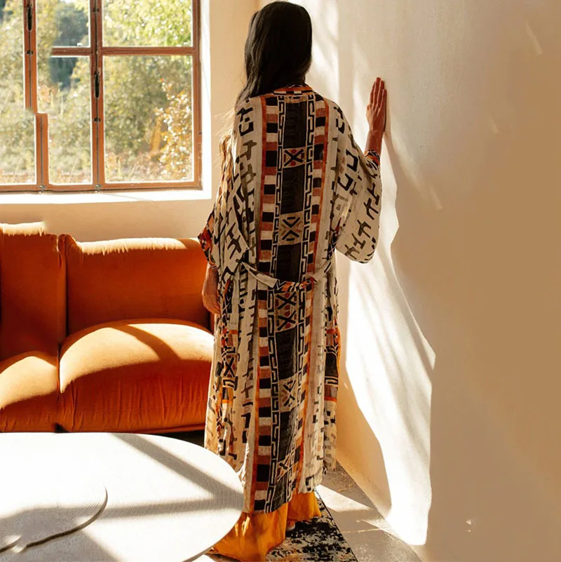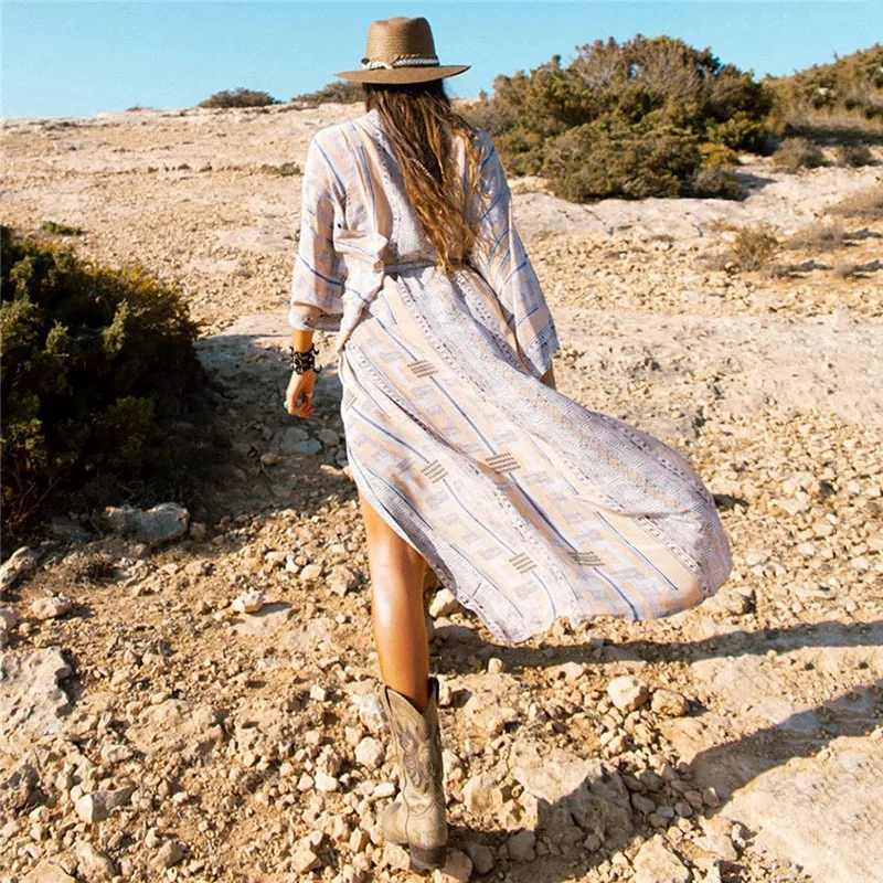DAMOCHIC Wholesale Printed Sexy Swim Cardigan With Waistband Beach Cover Up Vacation Long Kimono Bikini Cover Up Beachwear 2023
