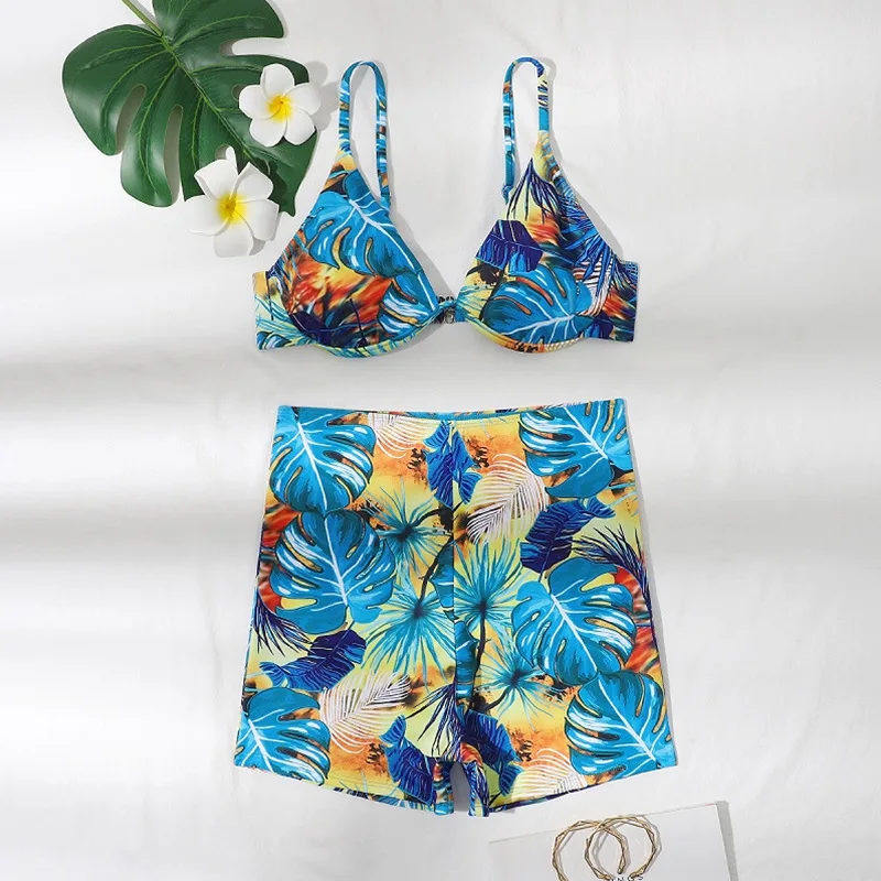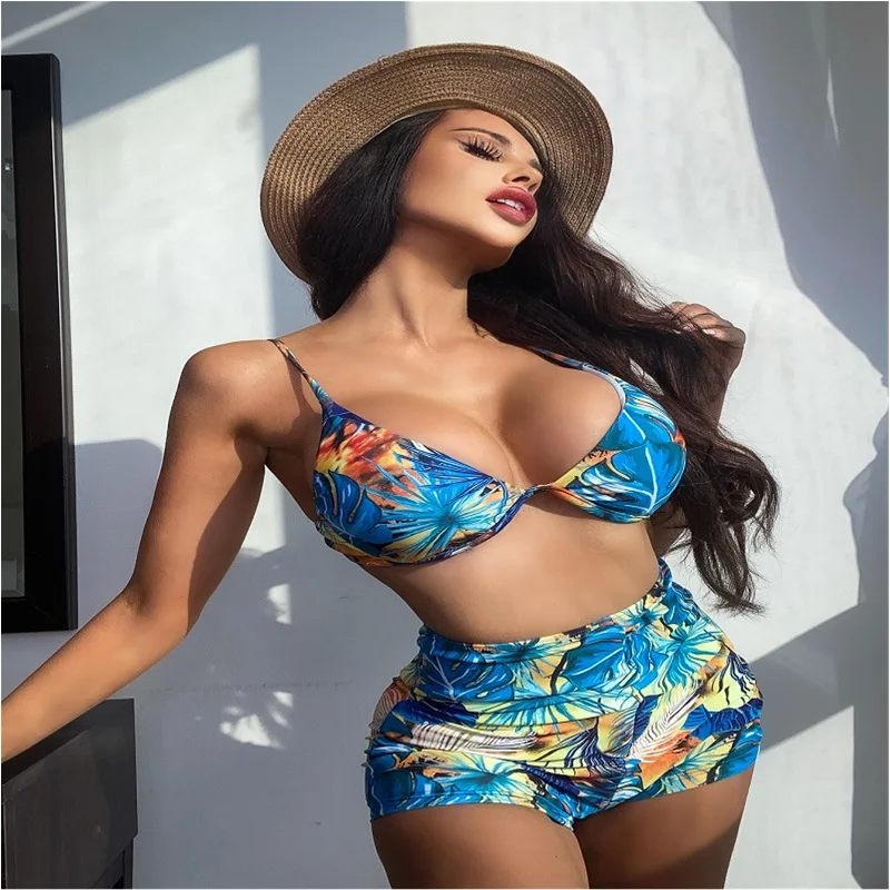 DAMOCHIC Wholesale Stamp Backless Swimsuit for women Summer The steel supports gather Bikini High-Waisted Bathing Suit 2023