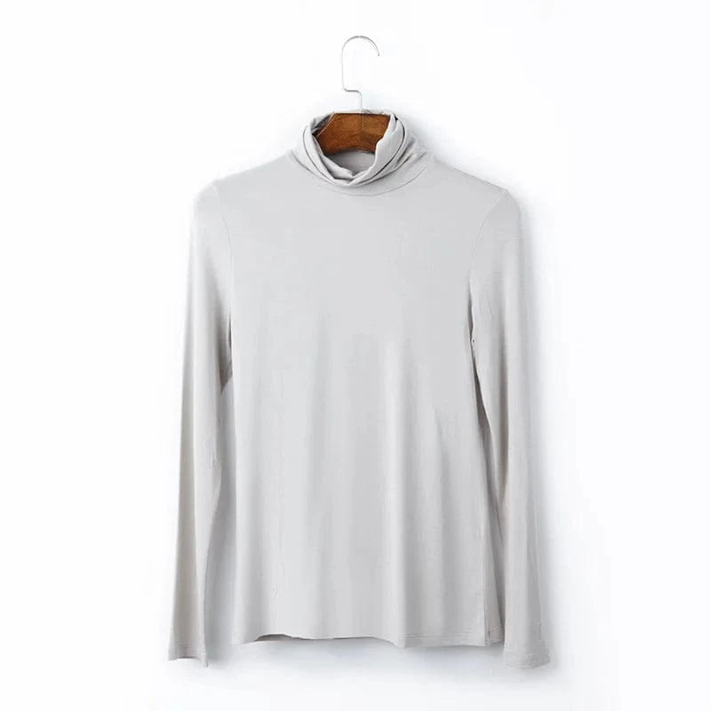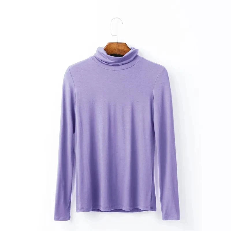 DAMOCHIC Women Basic Slim Fit Stretch T Shirt Solid Color Turtleneck Fall Tops Long Sleeve Plus Warm Soft Smooth Modal T Shirt Wholesale Supplier