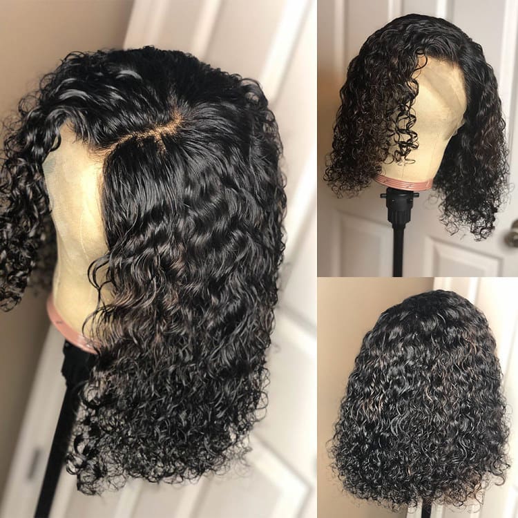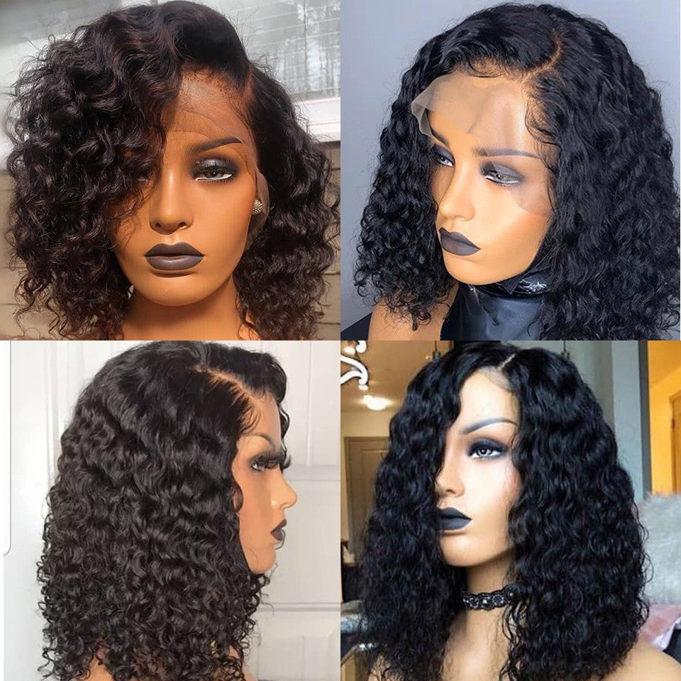 Deep Parting 13x6 Water Wave Short Bob Wigs Remy Indian Virgin Human Hair Lace Frontal Wigs 150% density water curly lace wigs