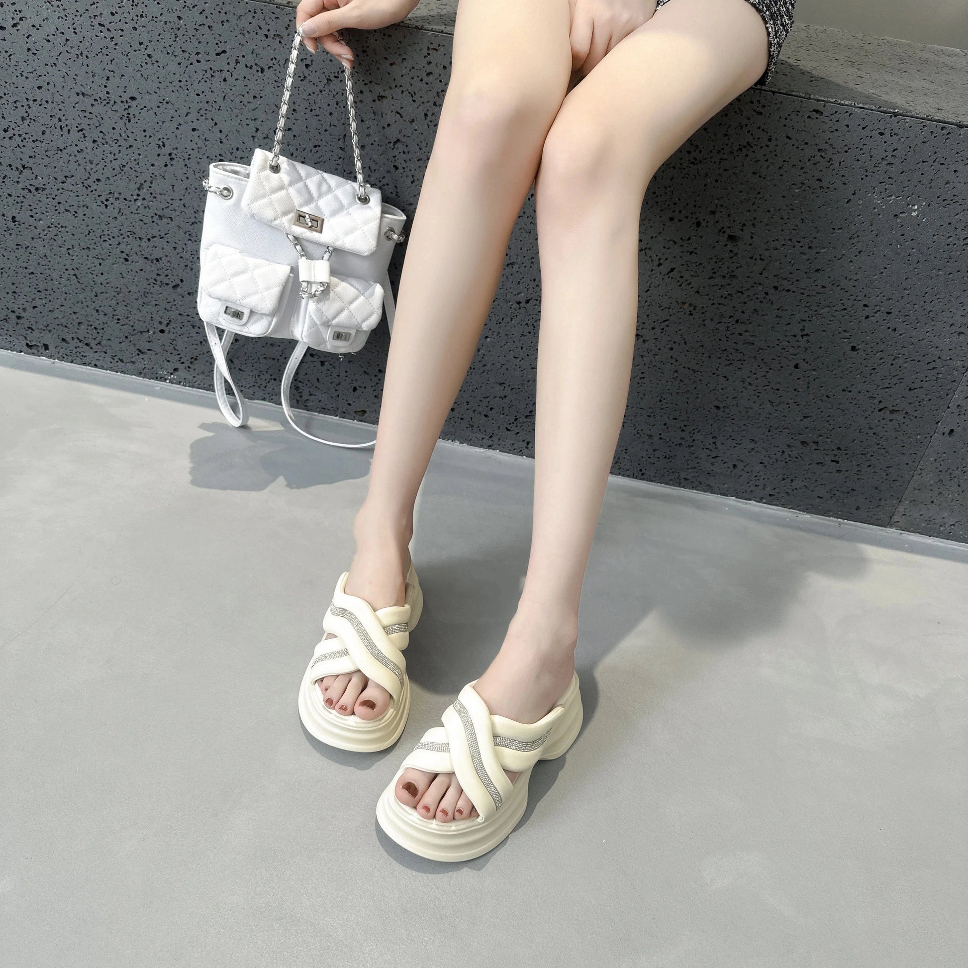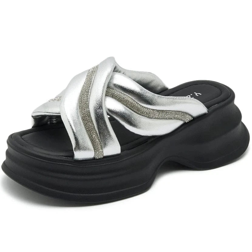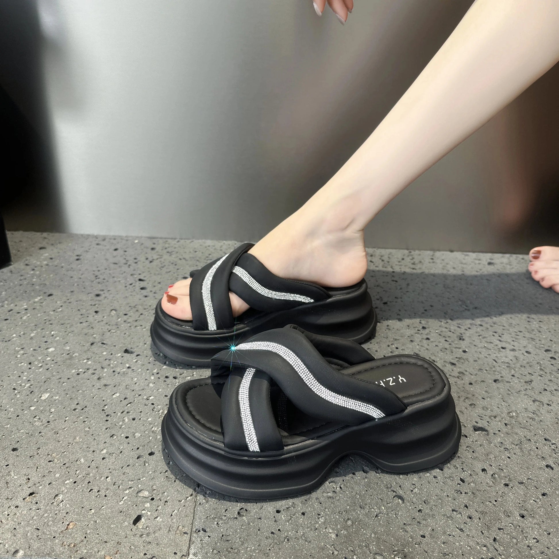 Dropshipping Custom Logo Rhinestone Chunky Platform Sandals Women Shoes Comfortable Ladies Slides Beach Slippers