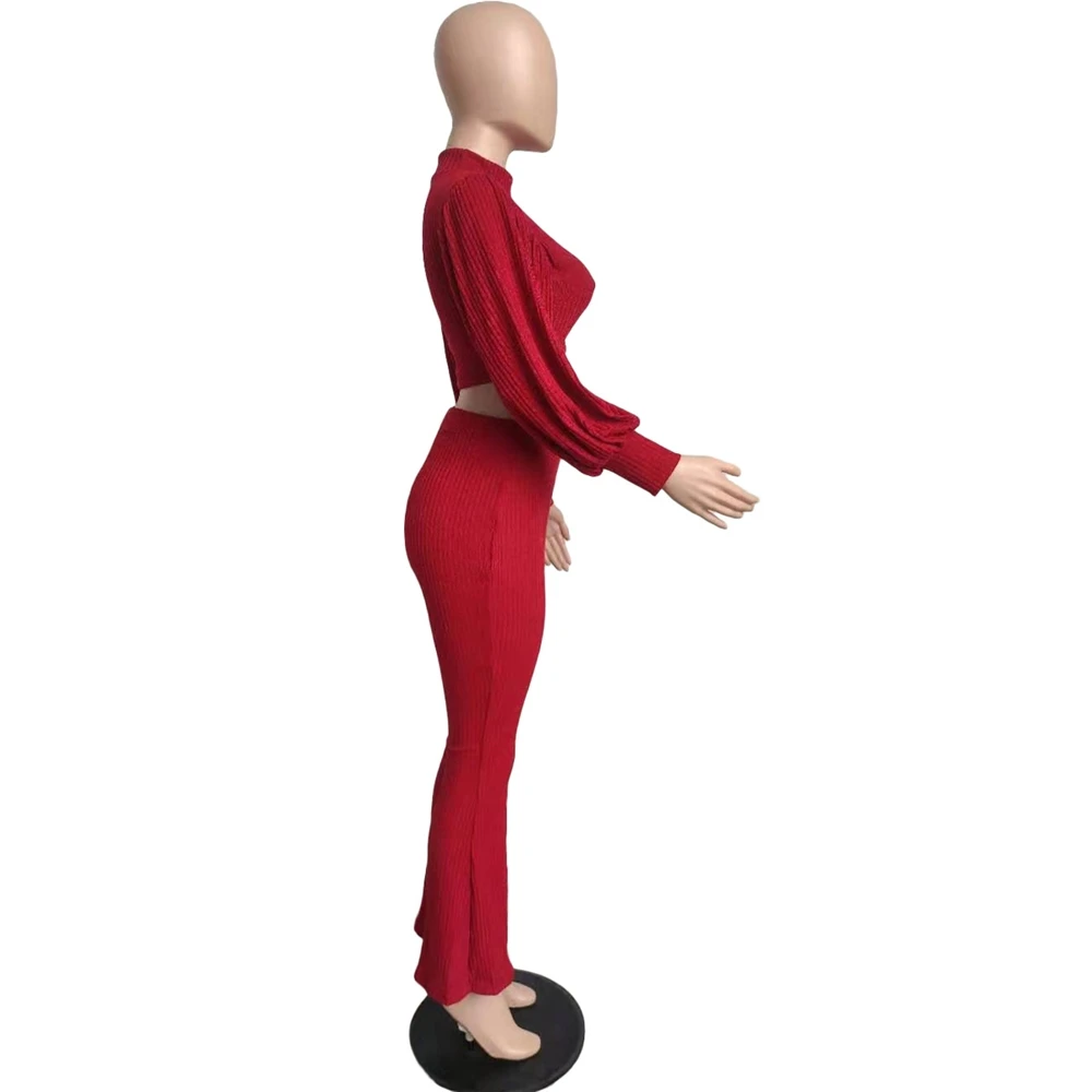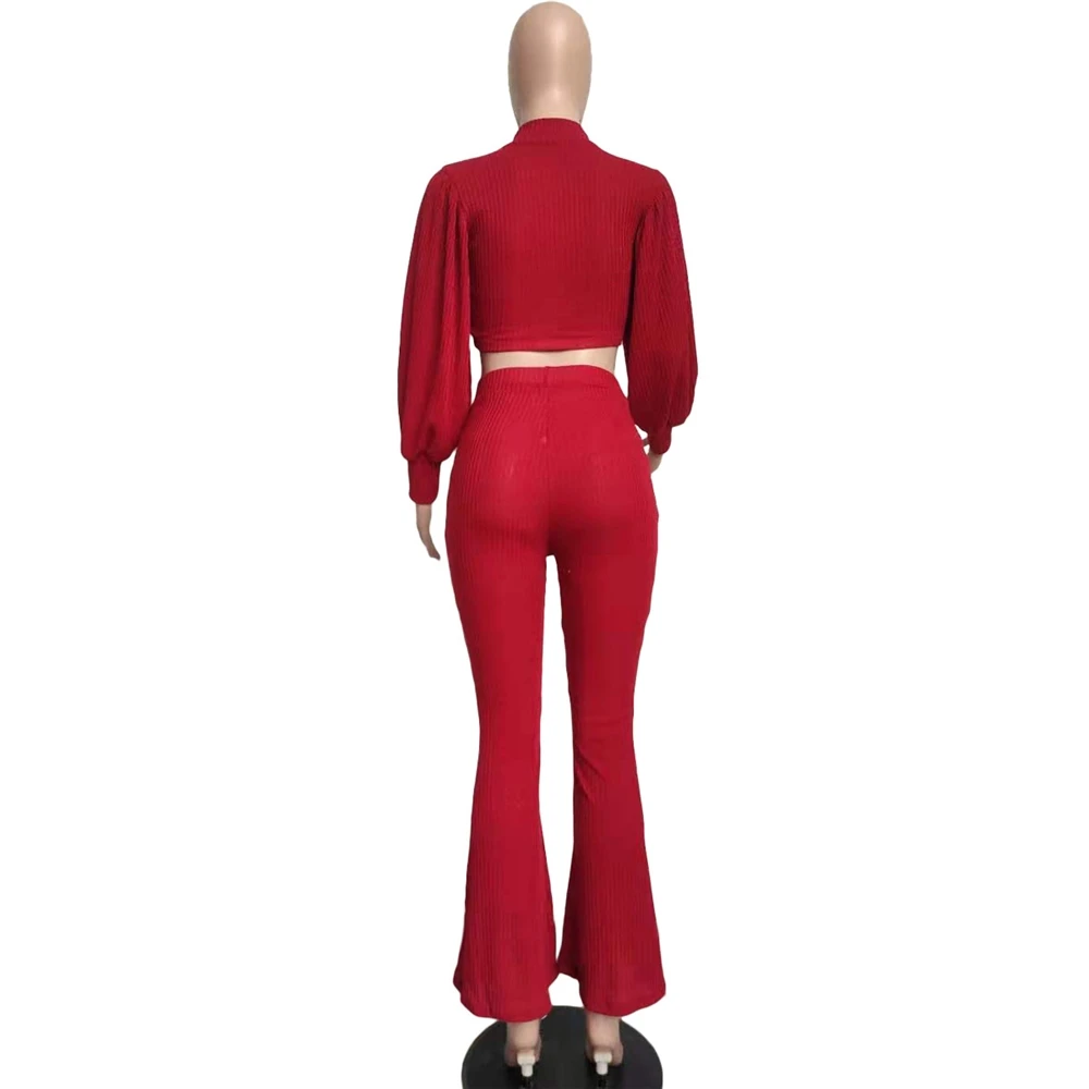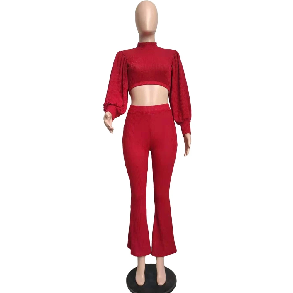 EB-2023 new2 Piece Track Suit Set Streetwear Crop Top Puff Long Sleeve Casual Wide Leg Pants Two Piece Outfits Fall Clothing For Women