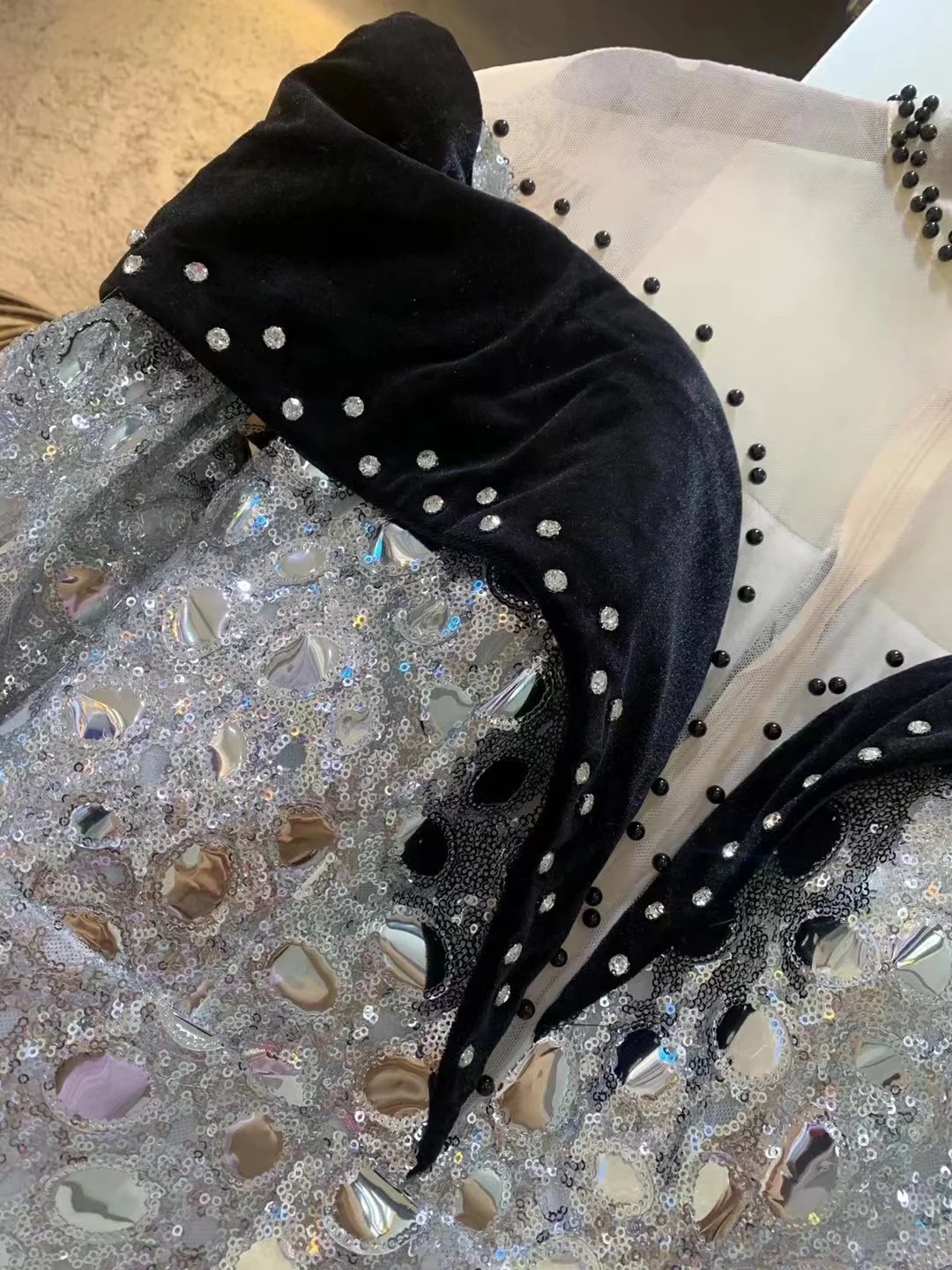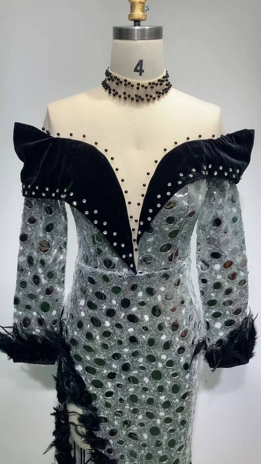 ED2226 Kimshein Women Elegant Mesh Velvet Occasion Thigh Split Maxi Sequin Beaded Dress Party Gowns Evening Winter Party Dresses