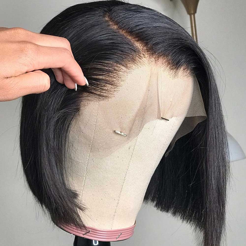 Fake Scalp Lace Cap 13x6 Deep Part Lace Front Human Hair Wigs Short BOB Pre Plucked Glueless Brazilian Silky Straight Remy 150%