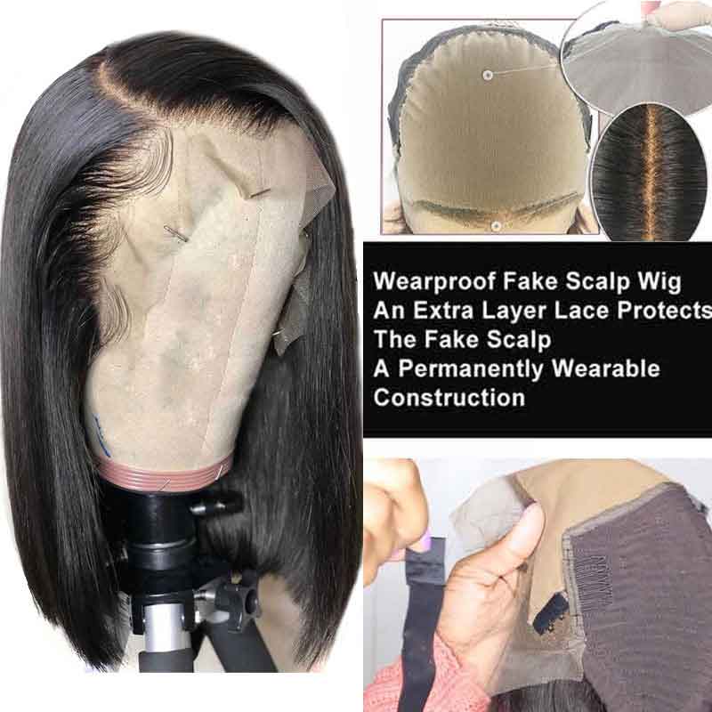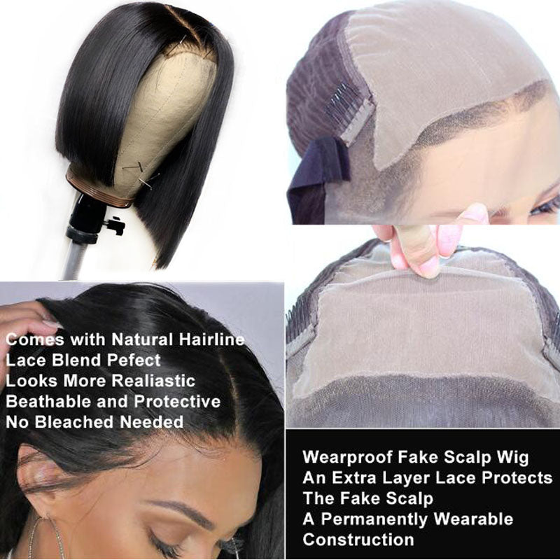 Fake Scalp Wig 13X6 Invisible 150% PrePlucked Short Bob Curly Frontal Closure Lace Front Human Hair Wigs For Black Women Remy