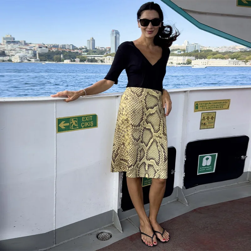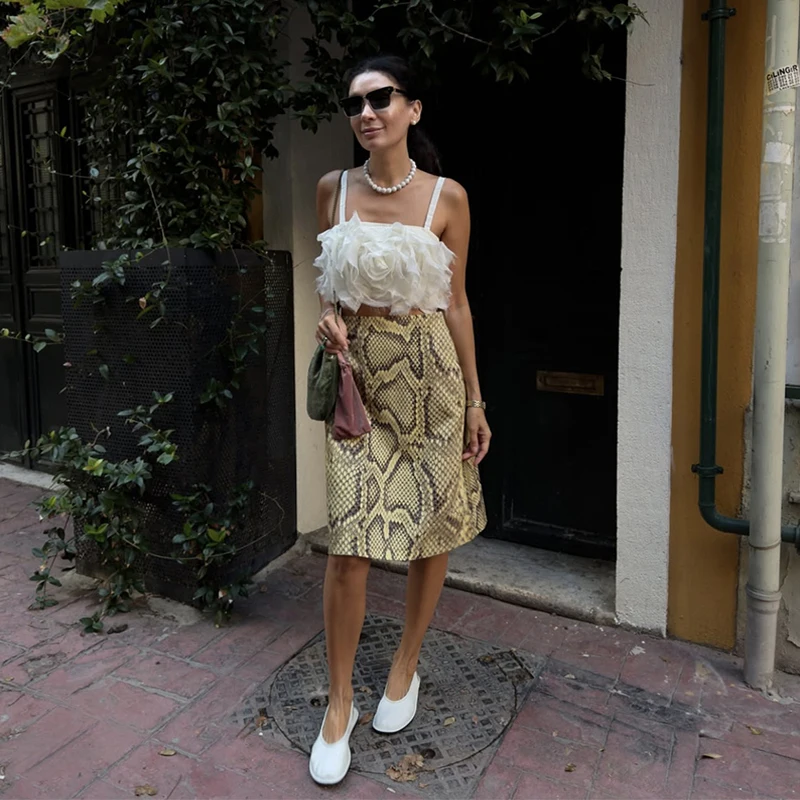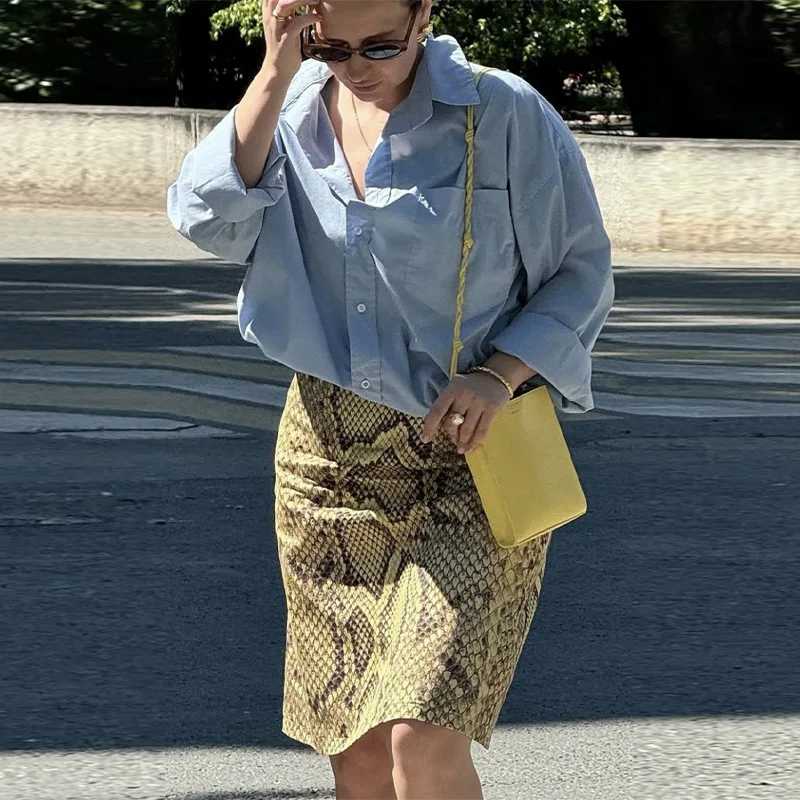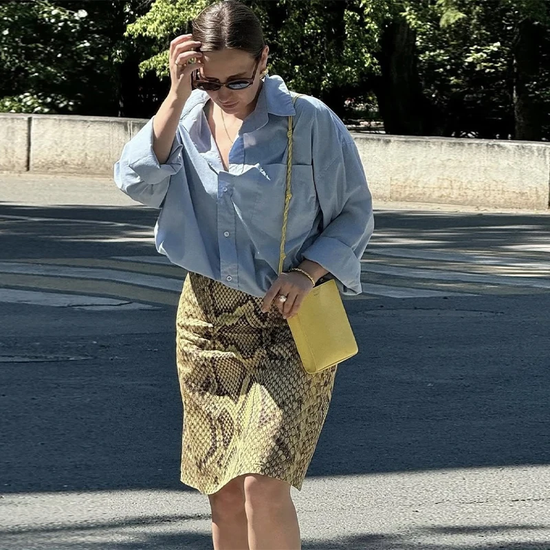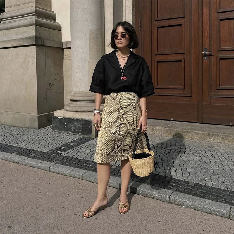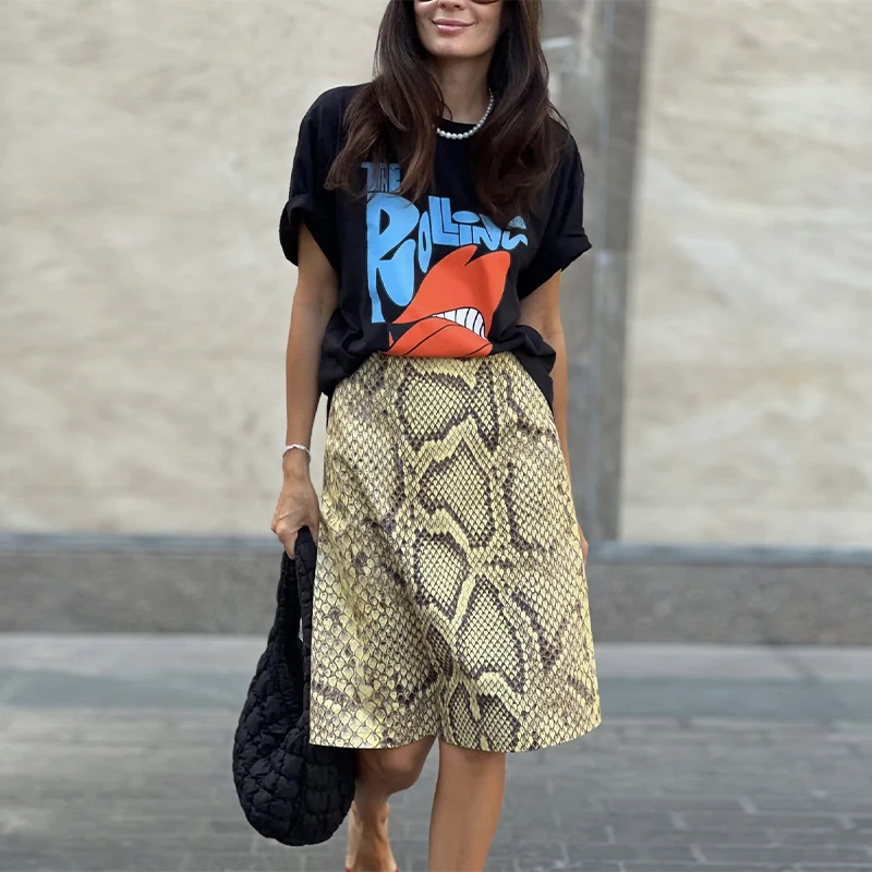 Fashion Ladies Half Skirt Snake Print High Waist Elastic Waist Loose Skirt Light Luxury Dress Versatile Summer Casual Skirts
