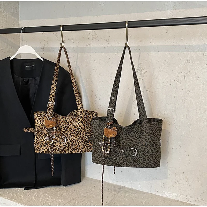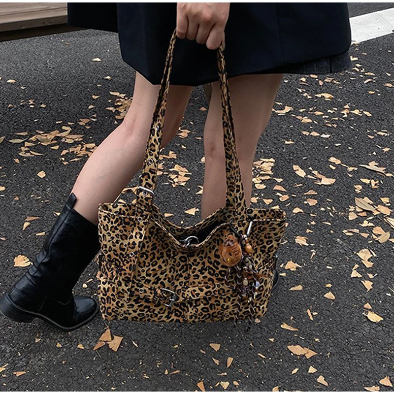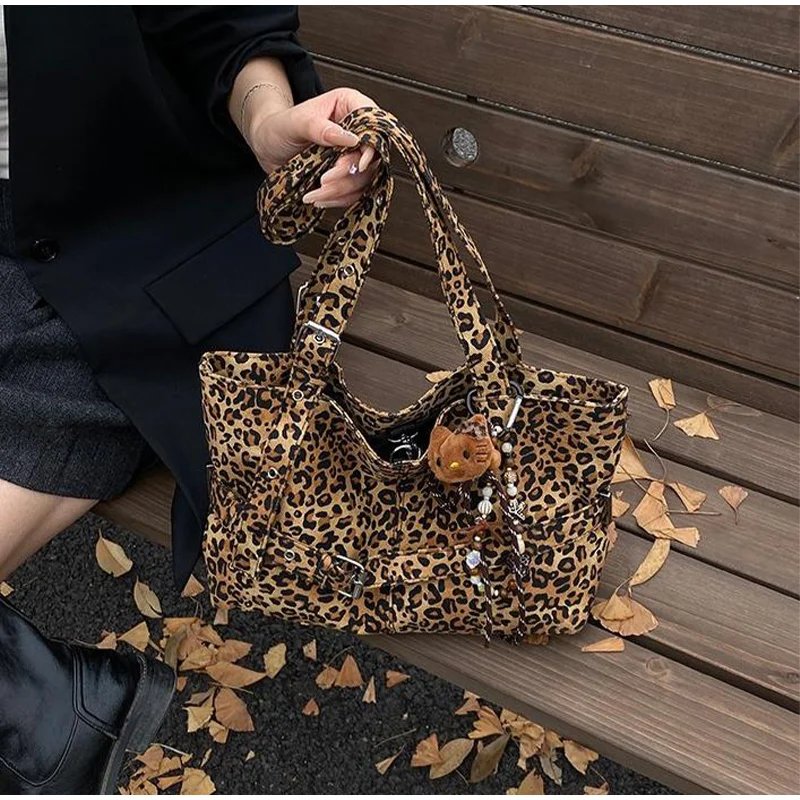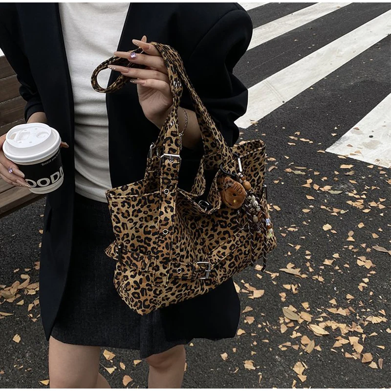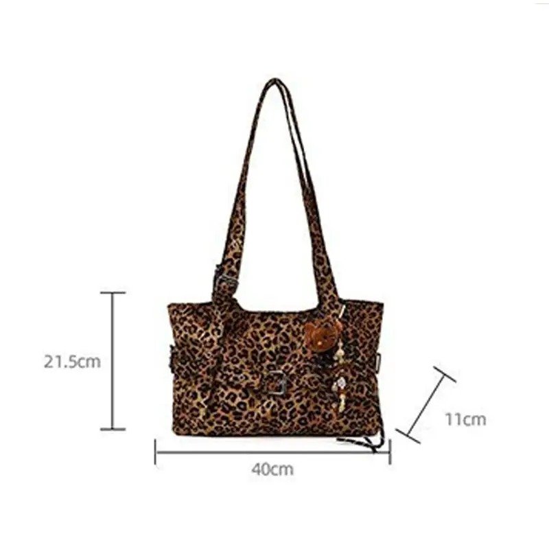 Fashion Versatile Leopard Print Tote Bag Women Large-capacity Canvas Shoulder Bag Work Commuting Relaxing Handbag With Pendant