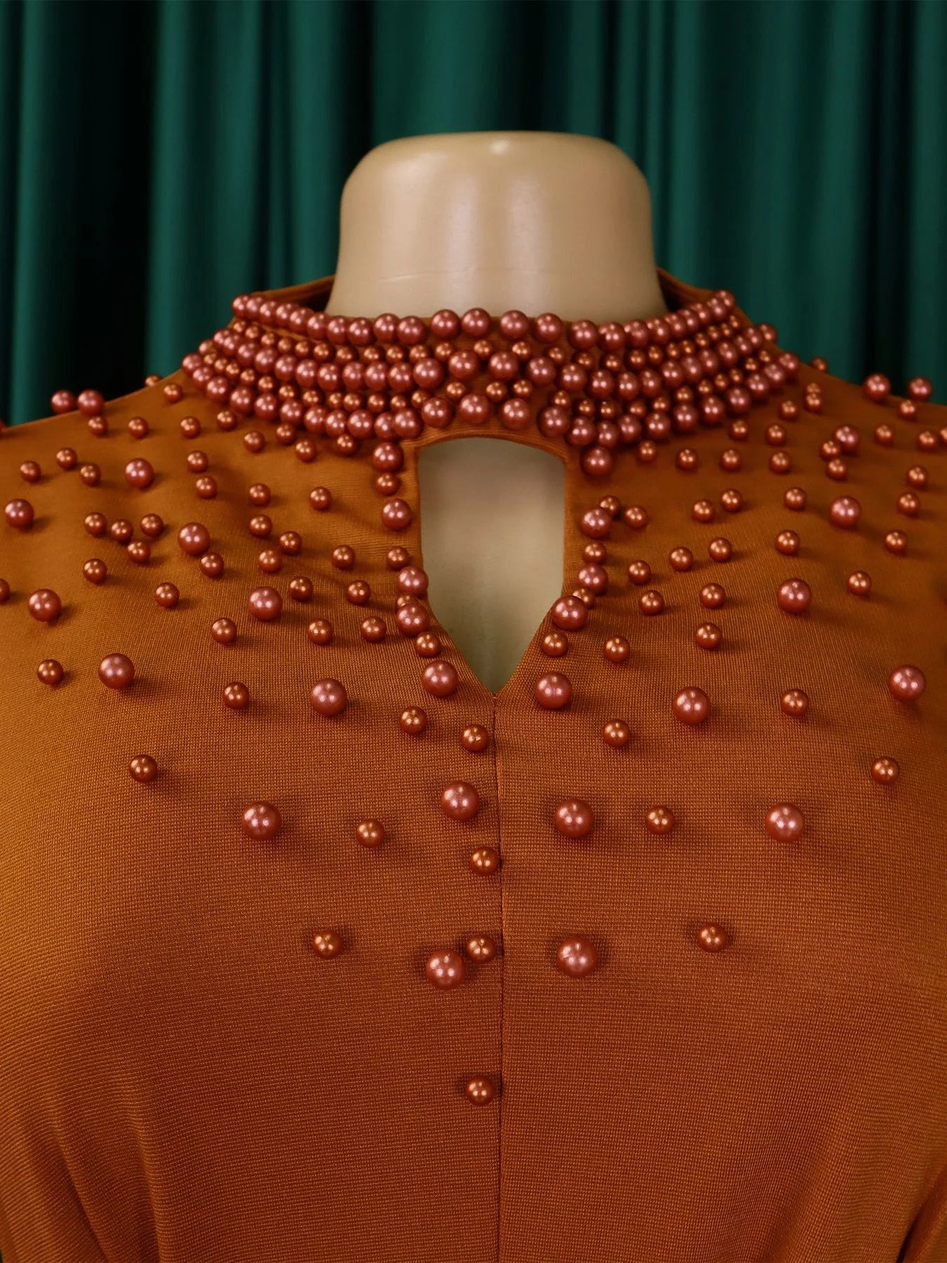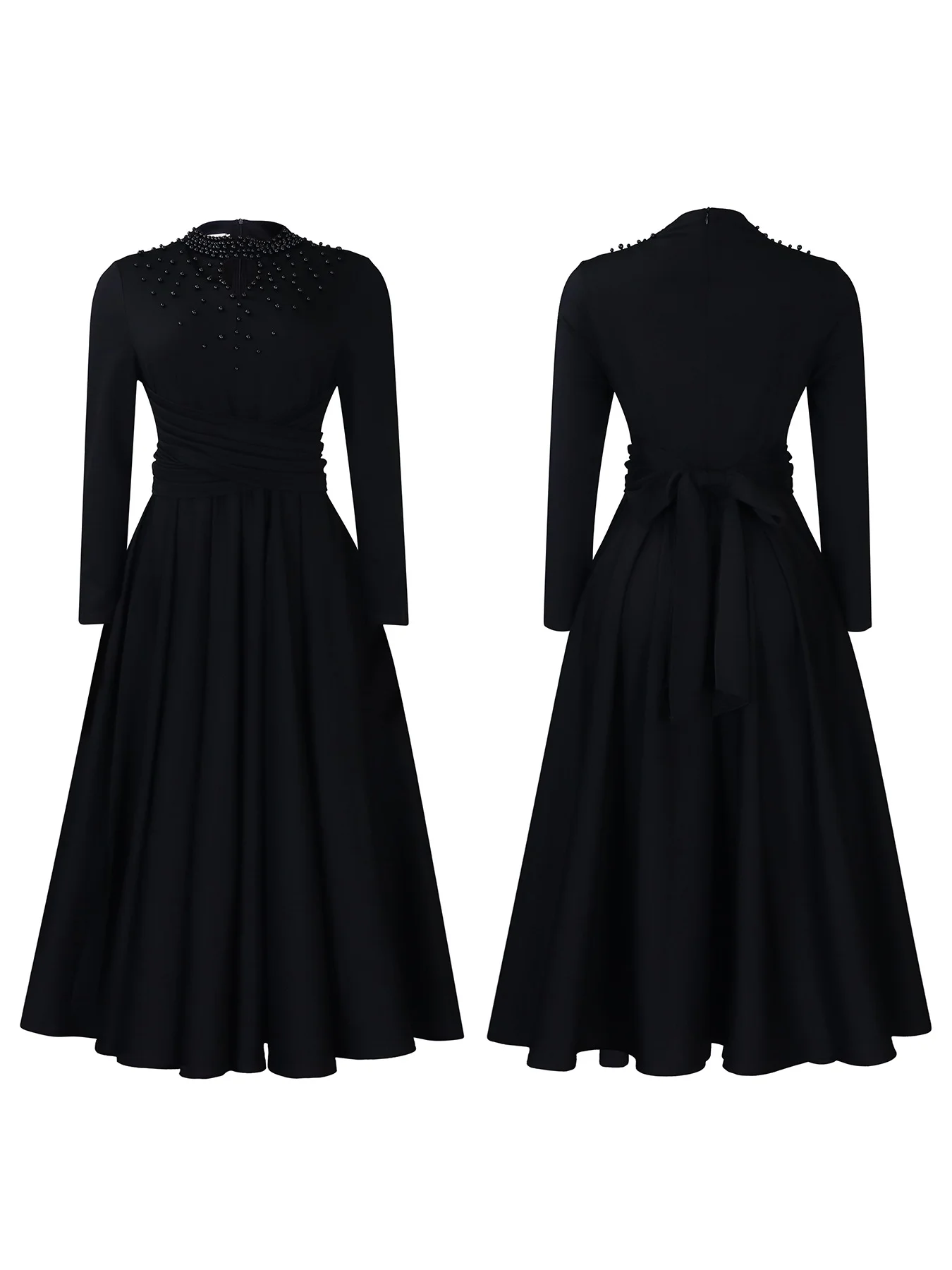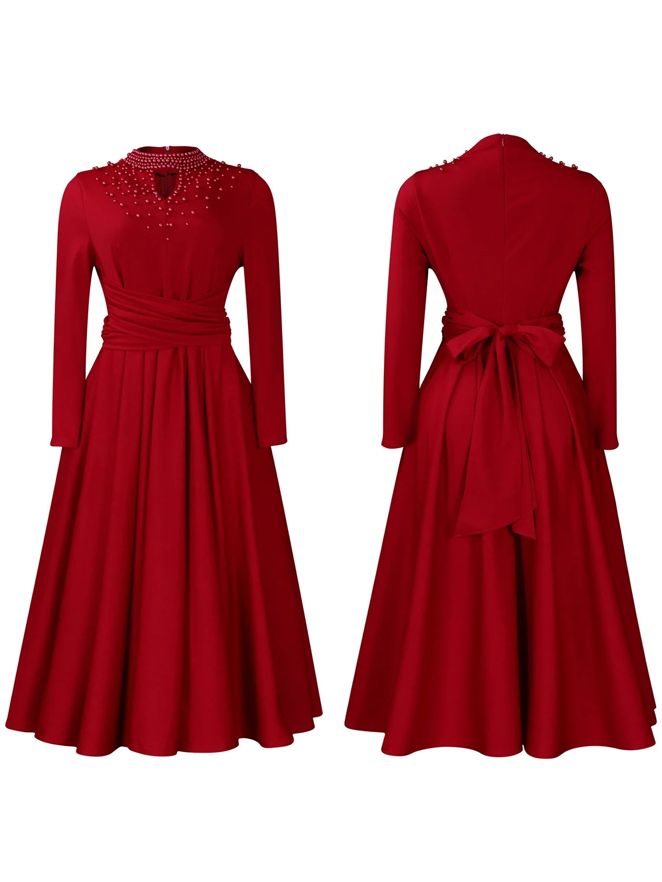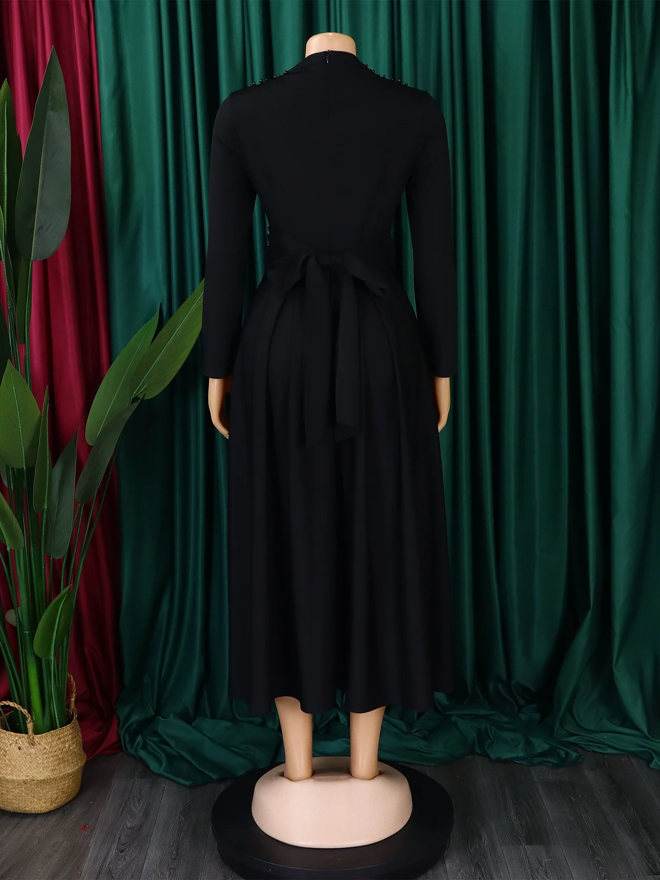 Fashionable High-collar Elegant Embroidered Large Dress Women Waist-shaping African Dress Trendy Plain Pattern Long Skirt