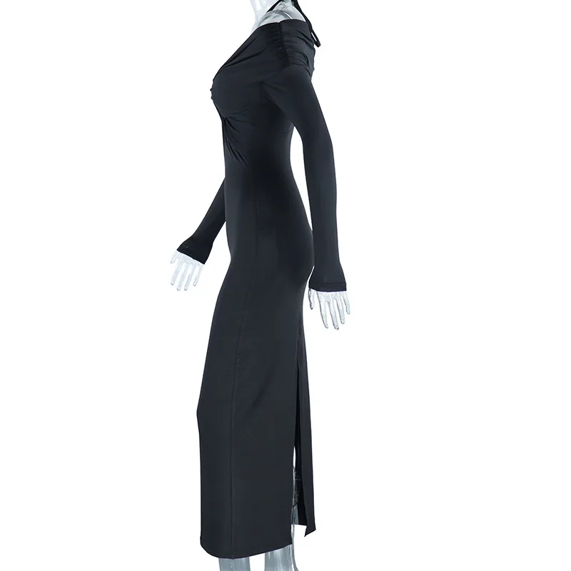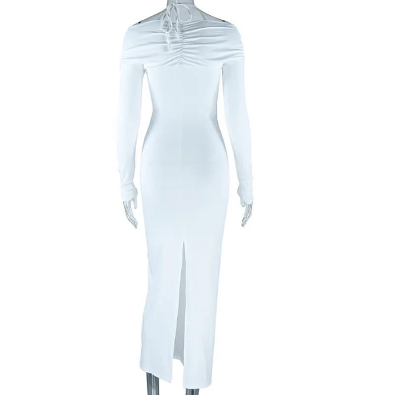 Fashionable Wedding Elegant Women Solid Color Bodycon One Shoulder Dress